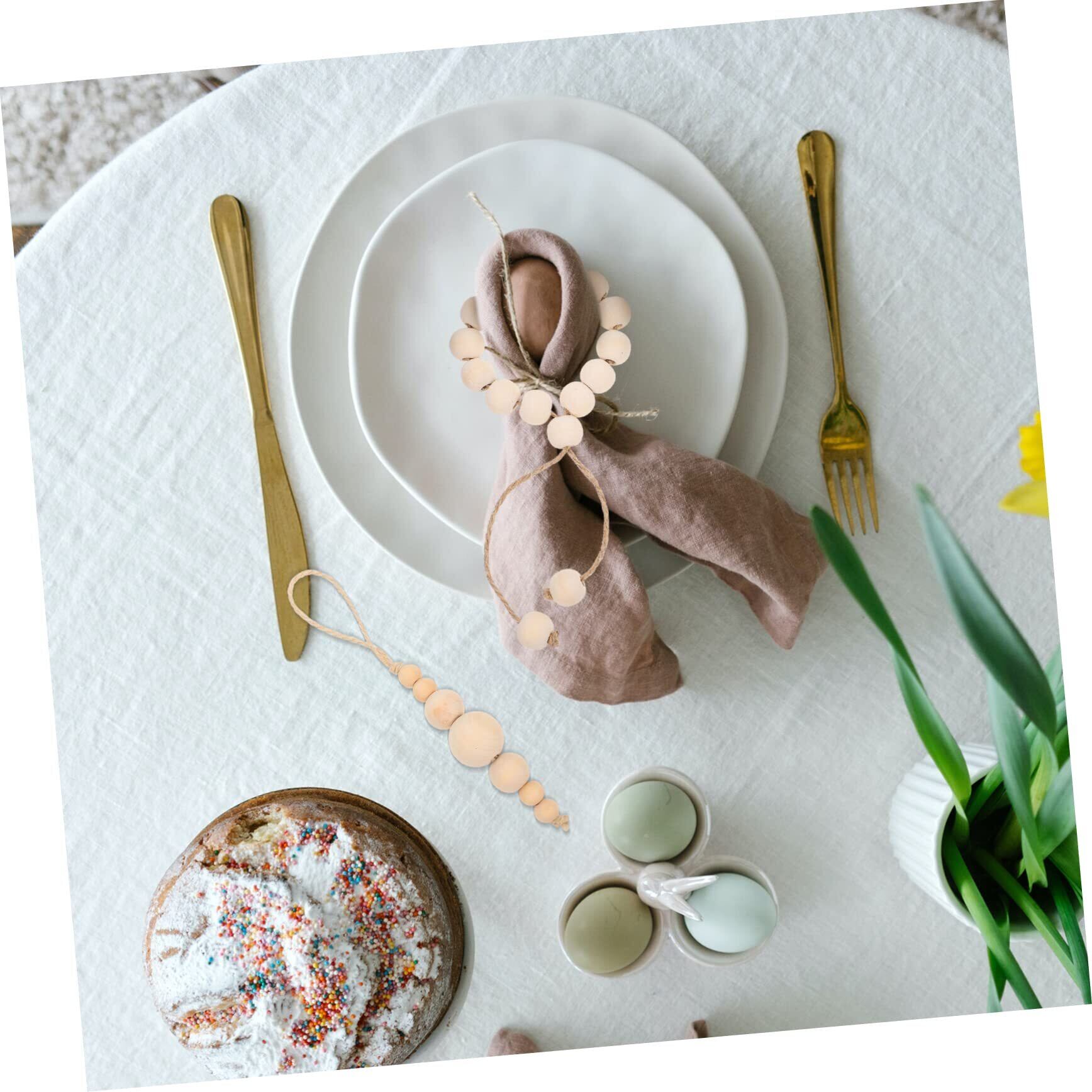 結婚式の宴会ナプキンホルダー - 装飾的な木製ビーズのデザインは自然の感覚を反映しており、シンプルなナプキンホルダー