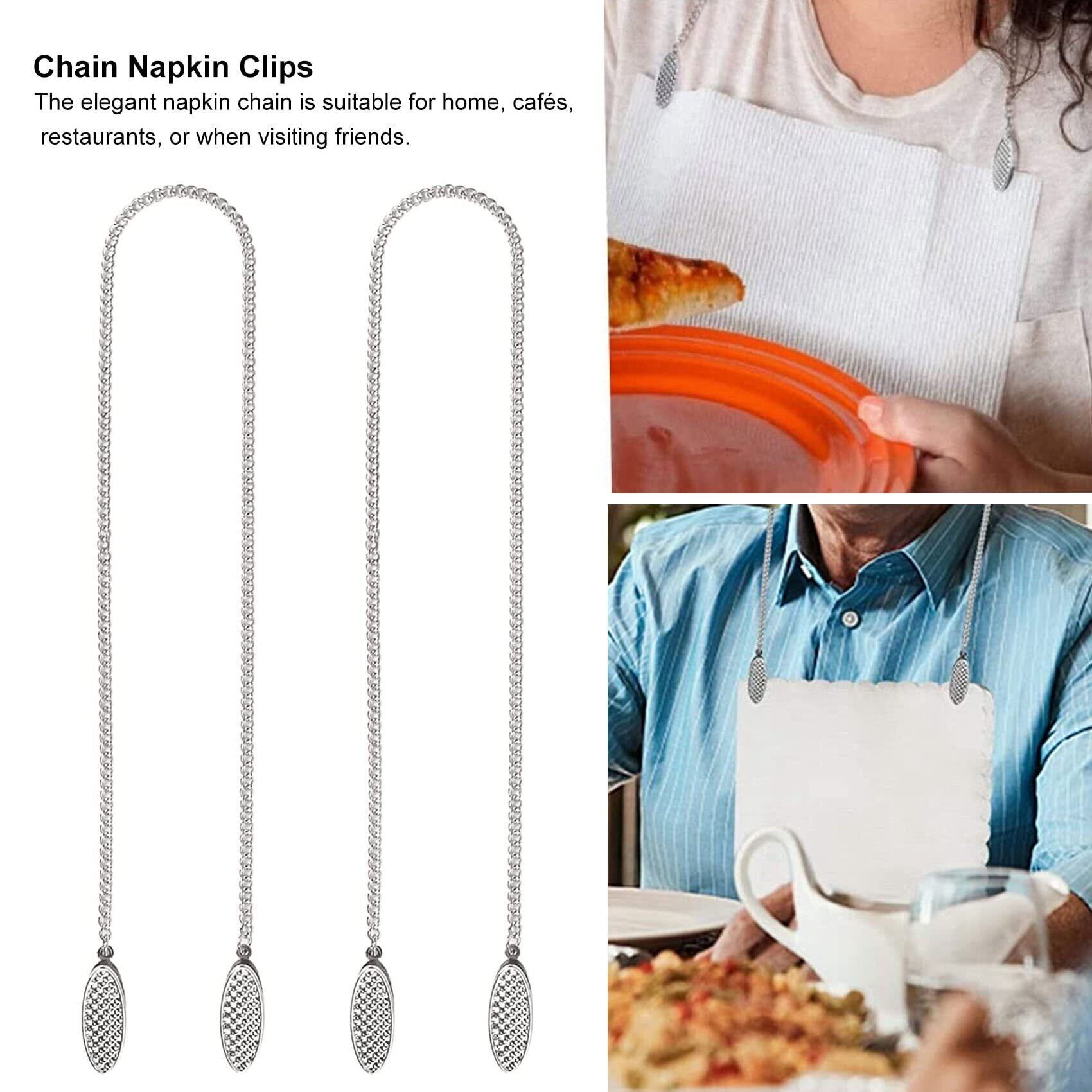 Chaksy 4個 ナプキンチェーンナプキンホルダー ナプキンクリップチェーン 柔軟なネックストラップネックストラップ 高齢者、高齢者、子供向け