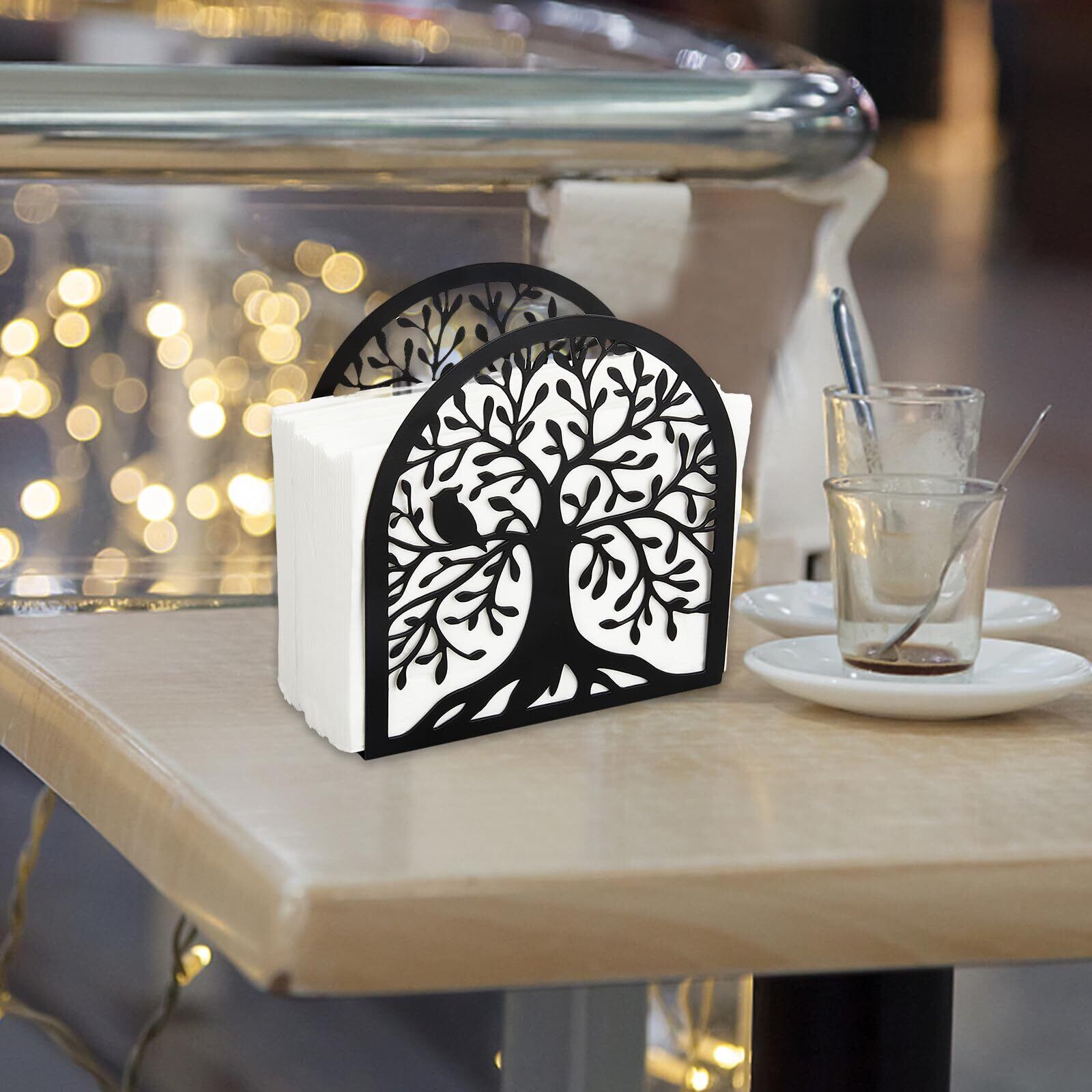 SUPERDANT 生命の木 ナプキンホルダー 鉄製ナプキンスタンド ナプキン収納 ペーパーホルダー 紙スタンド 自立式ティッシュディスペンサー 卓上ペーパーナプキンホルダースタンド ホームキッチン カフェ レストラン パーティーピ用 ブラック