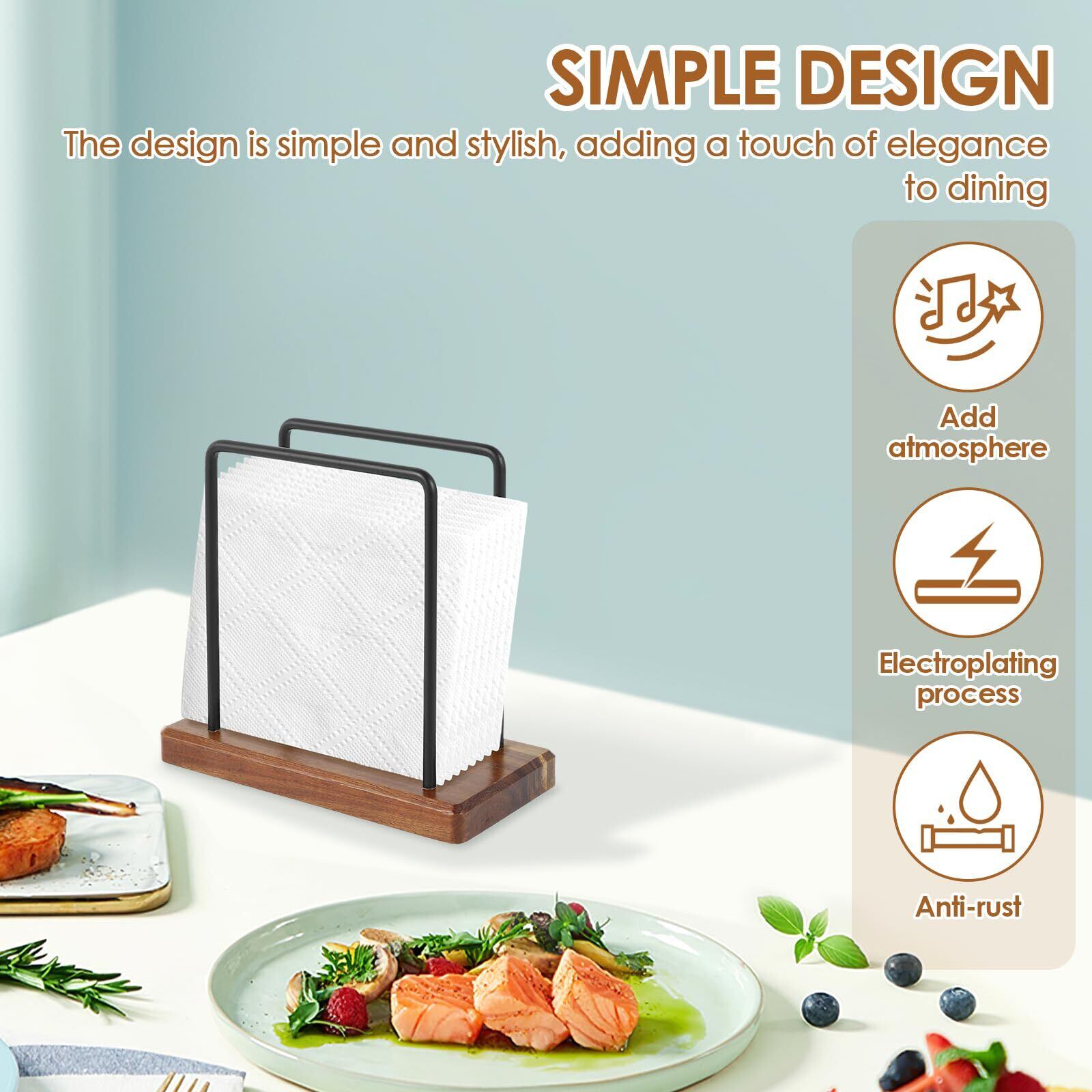 高品質の素材:ナプキンホルダーは高品質の木製ベースと鉄素材で作られており、木製ベースは細かく加工されており、滑らかでバリがありません。鉄製の金属フレームは、防錆性と抗メッキプロセスを採用しています。 -腐食しにくく、変形しにくく、丈夫で耐久性があります。