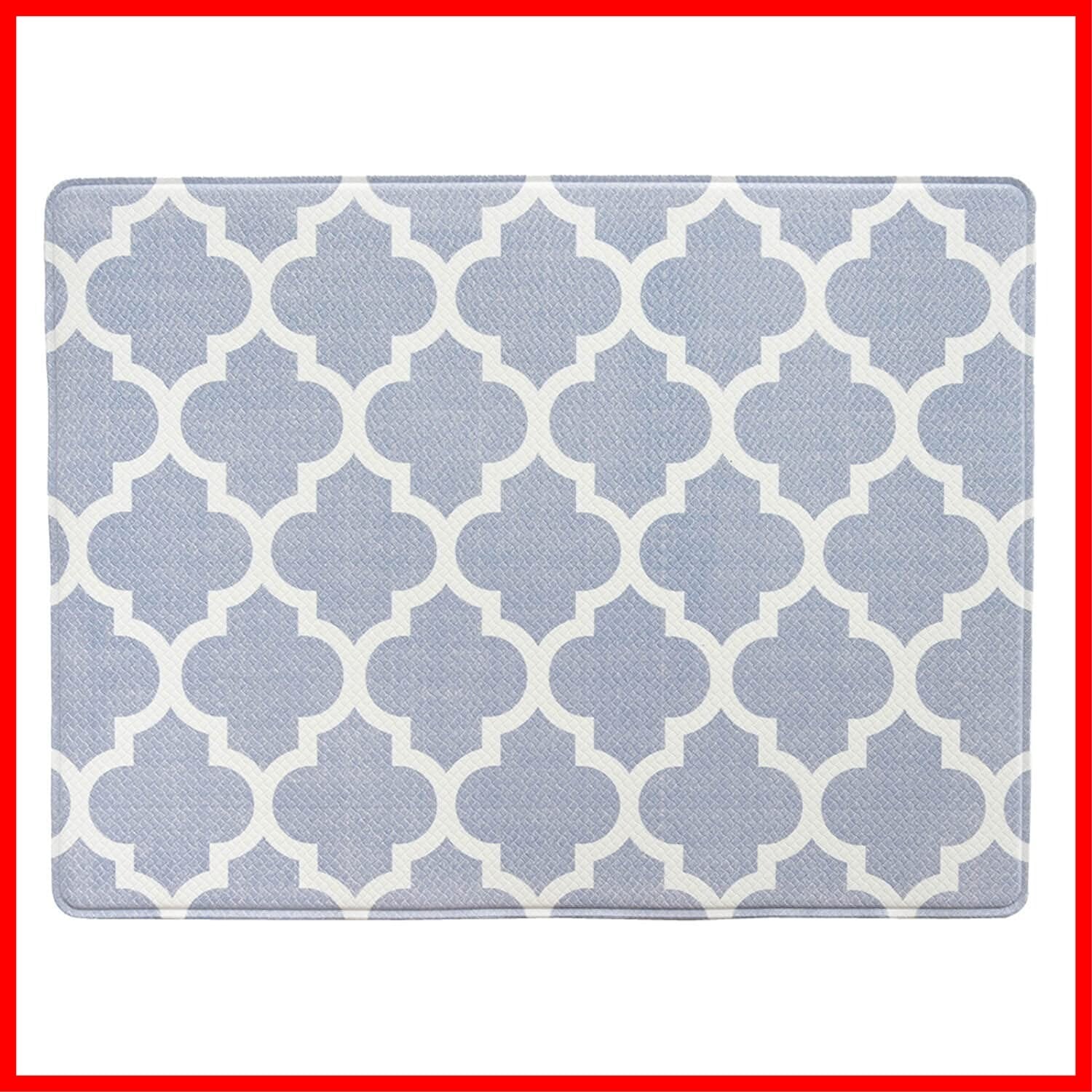 「この『オカ(OKA) ササっと拭けるマット』で、毎日の洗面時間をもっと快適に楽しんでみませんか!」/特徴:スタイリッシュなモロッカンデザインのこの洗面マットは、約45cm×60cmのコンパクトなサイズで、洗面所やバスルームに最適です。グレーのトーンはどんなインテリアにもスムーズに馴染み、空間をグラデーションします。