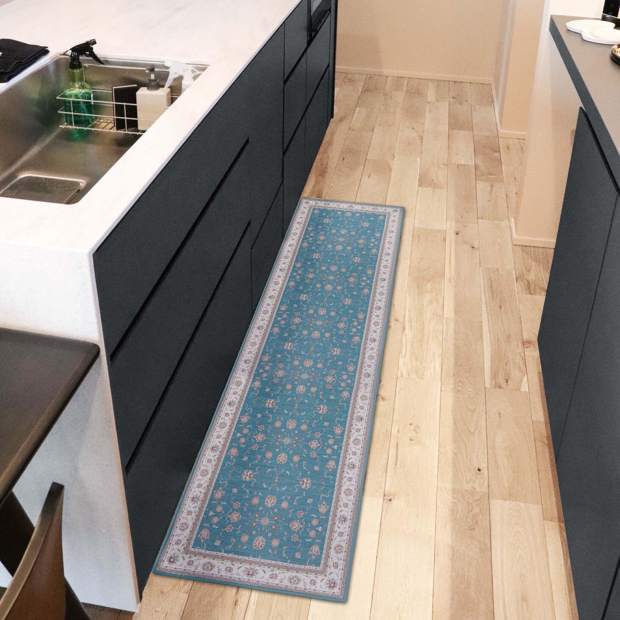 【特価商品】オカトー khastan カスタン インテリアマット キッチンマット 玄関マット 洗える すべり止め加工 縦45×横180cm ブルー
