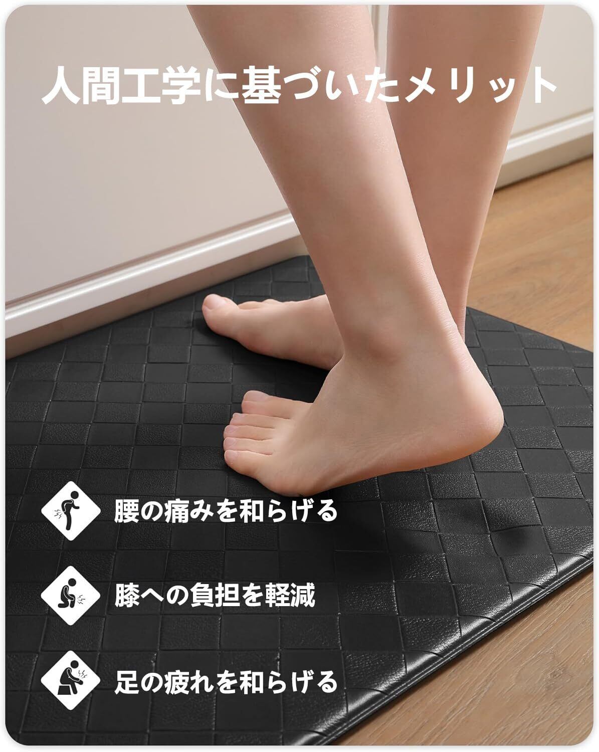 おしゃれなデザイン: スタイリッシュなカラーとサイズでキッチンにぴったり。シンク前など、長時間立つ場所にも最適です。料理や皿洗い、洗濯中の快適さとスタイルを両立