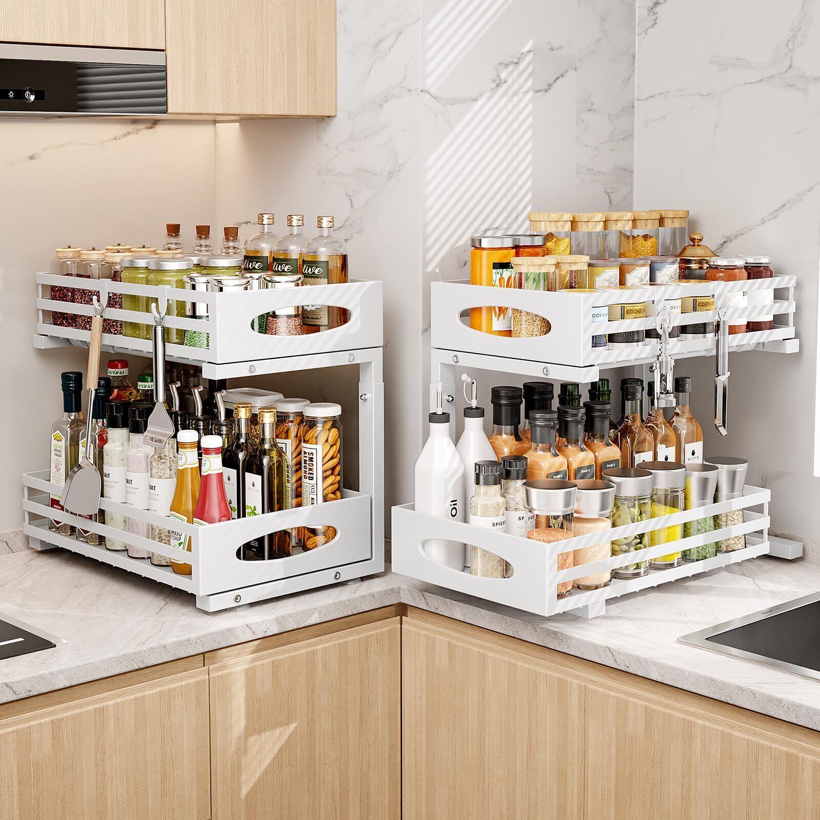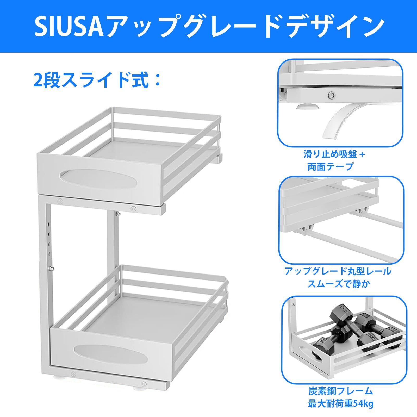 SIUSA シンク下 収納 スライド式 洗面所 収納 2段引き出し式 キッチン収納 2個セット シンク下収納ラック 幅20cm 洗面台下 調味料 収納 小物整理 金属製 高さ調節可能 大容量 組立簡単 キッチン/トイレ/寝室 ホワイト
