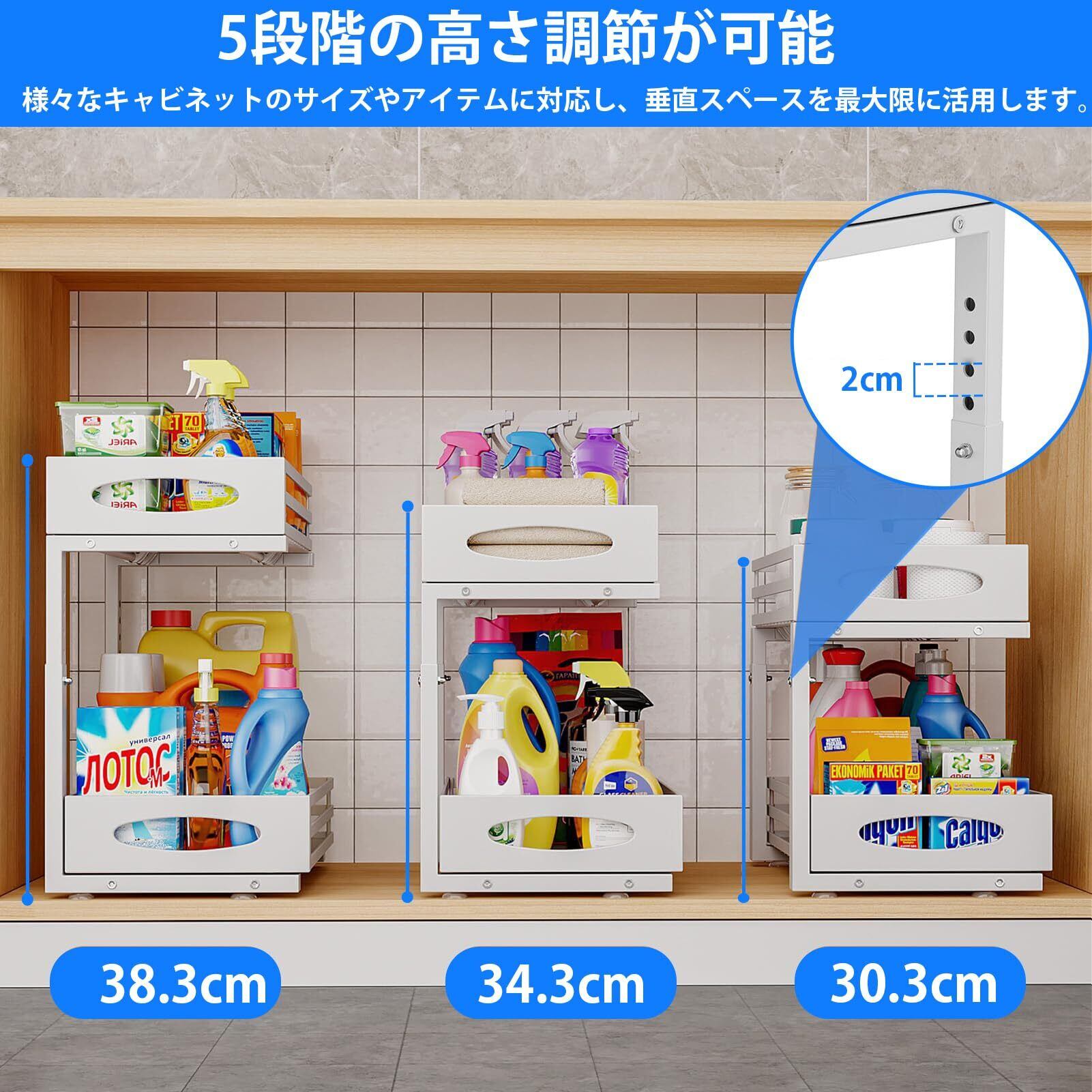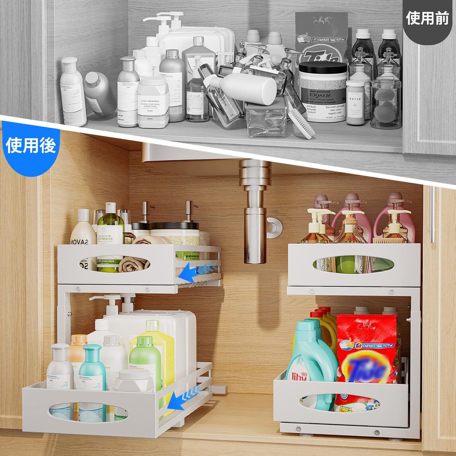 【2022最新】SIUSA シンク下 収納 スライド式 洗面所 収納 2段引き出し式 キッチン収納 2個セット シンク下収納ラック 幅20cm 洗面台下 調味料 収納 小物整理 金属製 高さ調節可能 大容量 組立簡単 キッチン/トイレ/寝室 ホワイト | Cherry Blossoms
