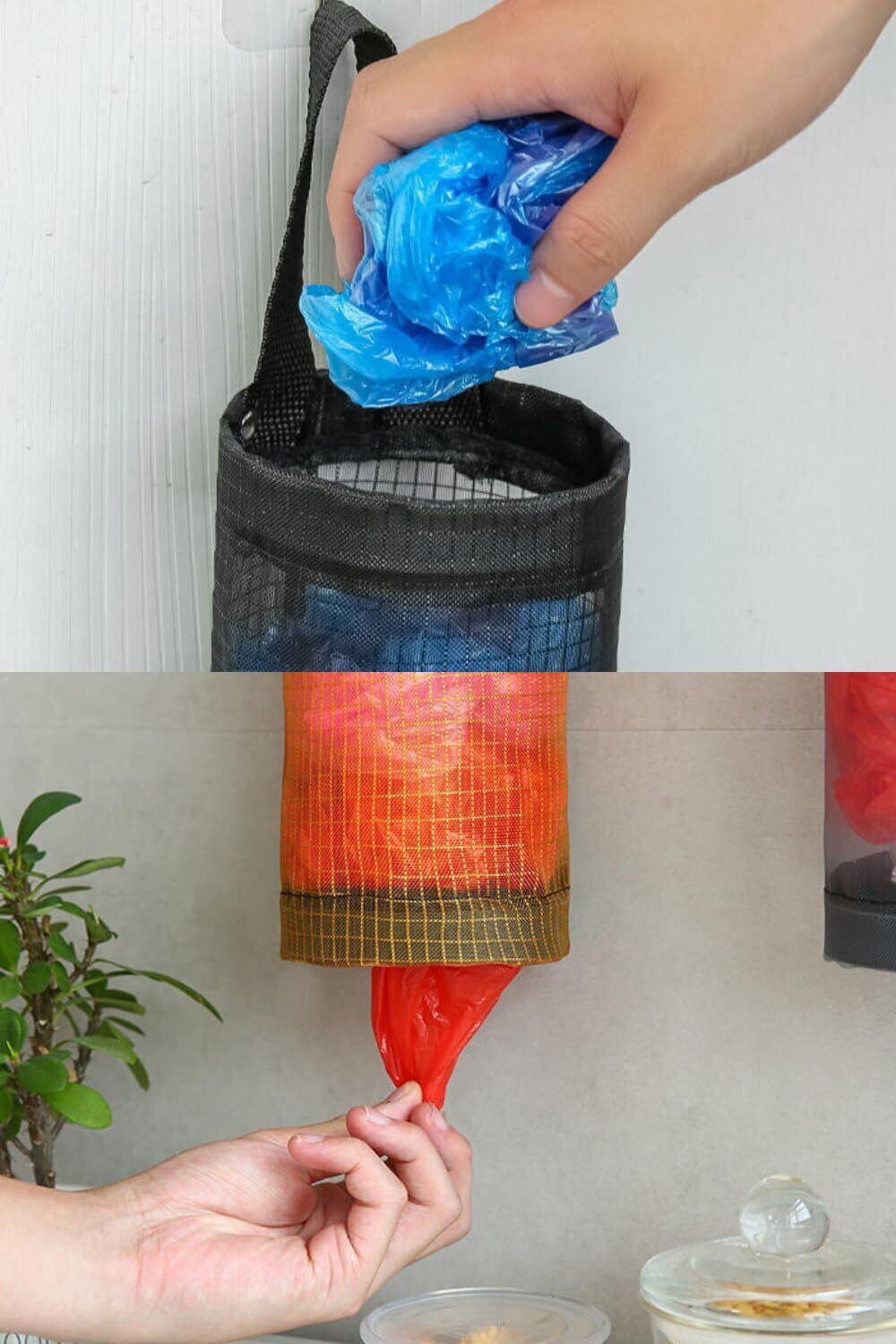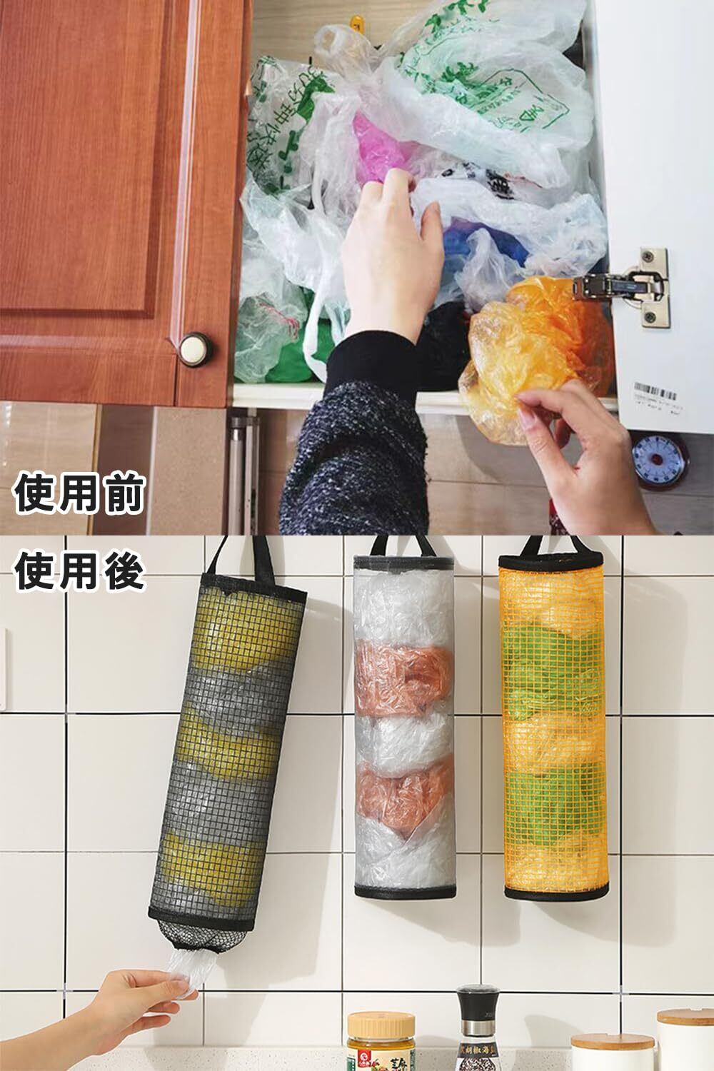 ビニール袋、買い物袋、ゴミ袋などを取り出しやすく収納可能。使い捨ての靴カバーを入れることもできます。