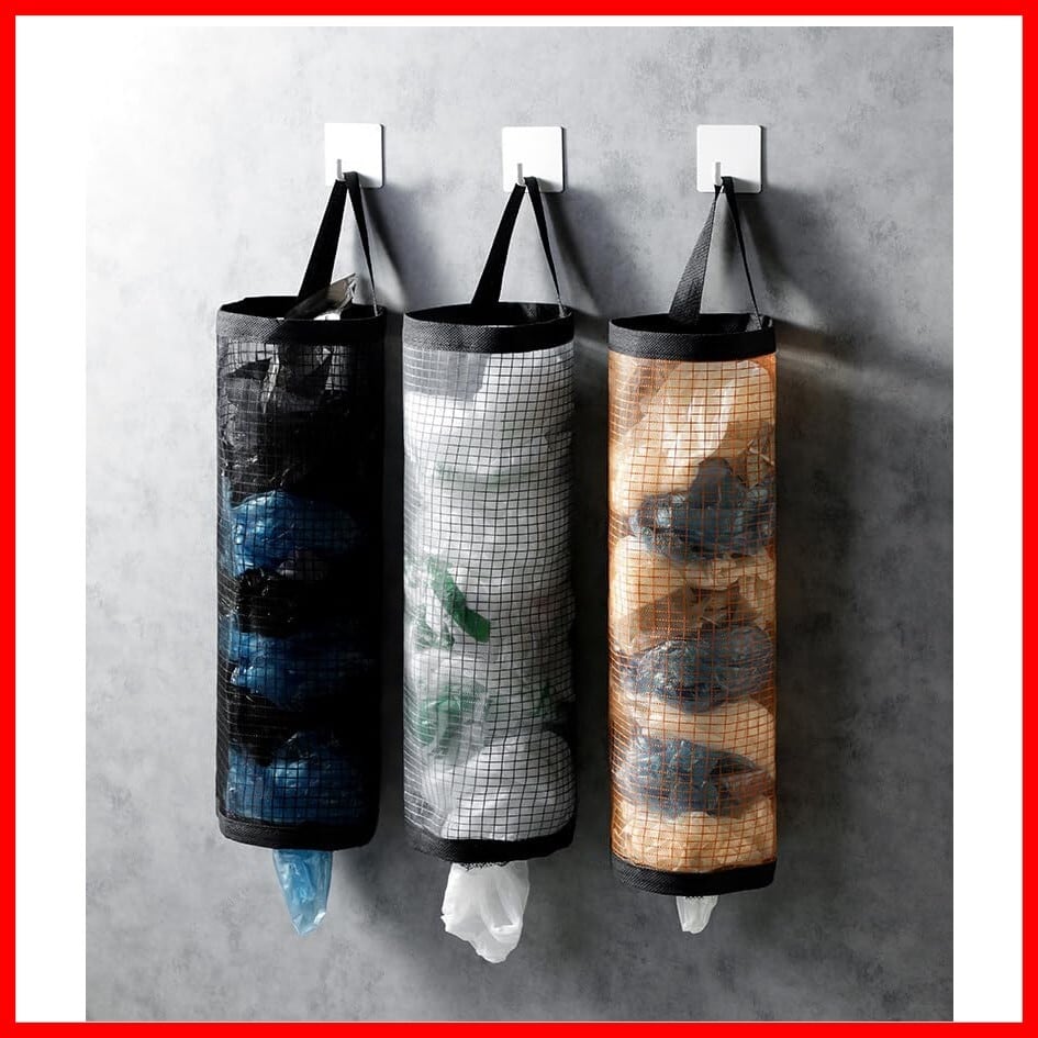【人気商品】ビニール袋収納ラック3点、キッチン壁掛け収納、ショッピングバッグ分配オーガナイザー(イエロー、グレー、ブラック)