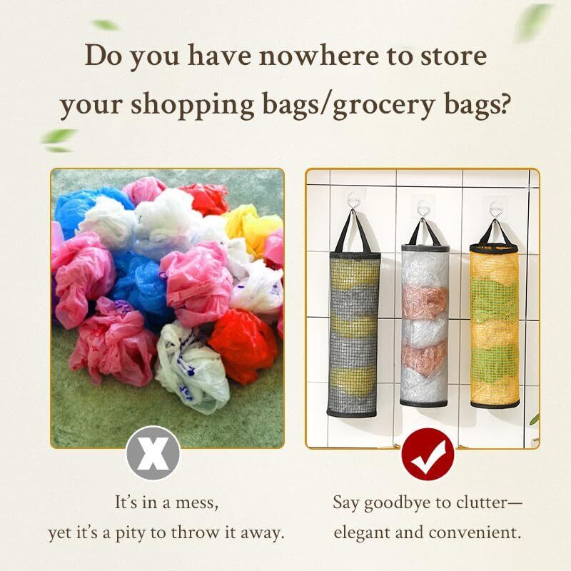 「この『ビニール袋収納ラック』で、キッチンや家庭の収納をスマートに整えてみませんか!」/特徴:3色のバリエーション(イエロー、グレー、ブラック)を揃え、壁掛け式のデザインでスペースを有効活用しながら、ショッピングバッグやビニール袋をすっきり整理できます。必要な時にサッと取り出せる便利さで、日常の生活を快適にサポートします。