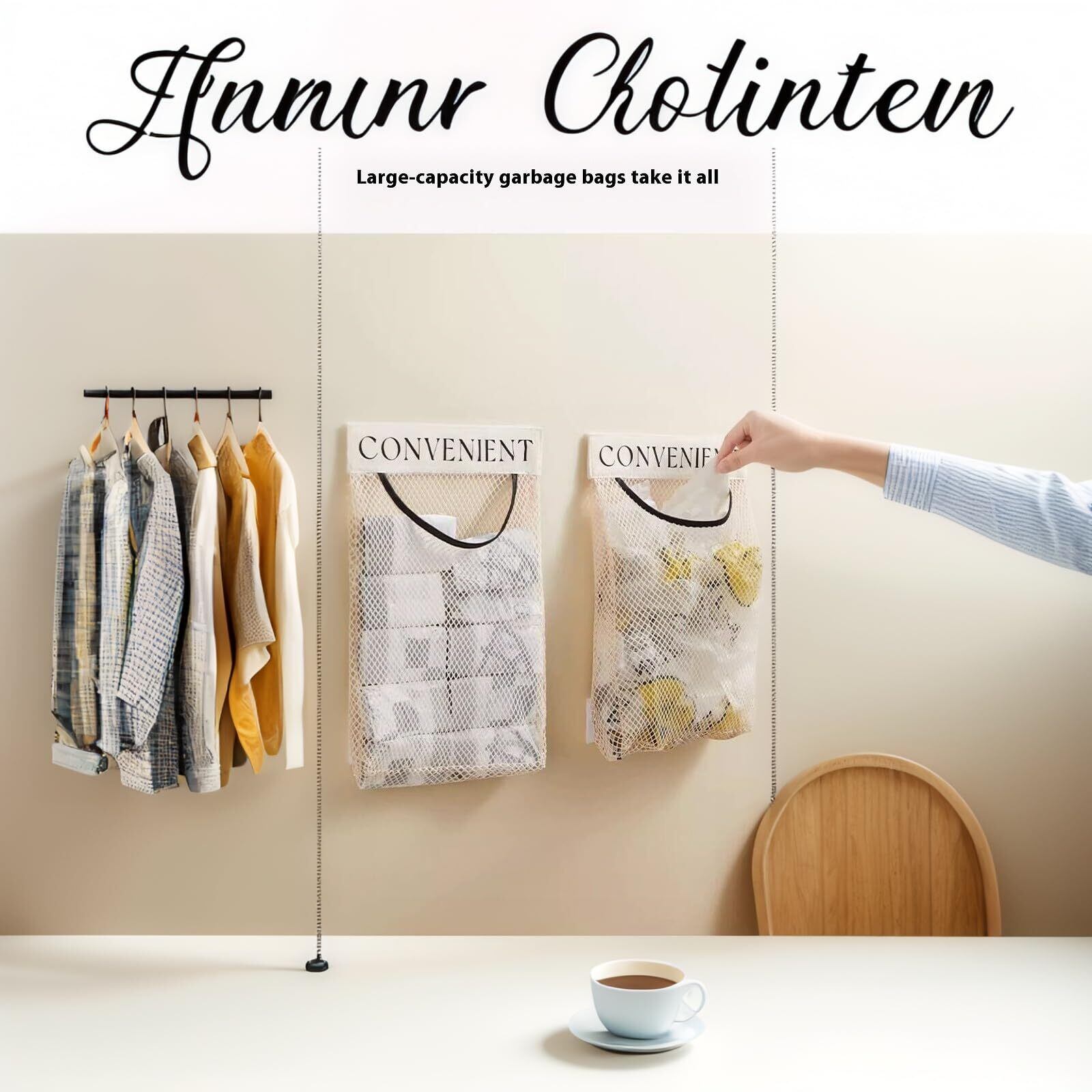 【特価商品】食料品のゴミ袋ホルダー ゴミ袋ディスペンサー 粘着性のある壁に取り付けられたメッシュ 家庭 キッチン ショッピング ゴミ袋 再利用可能 トートバッグ