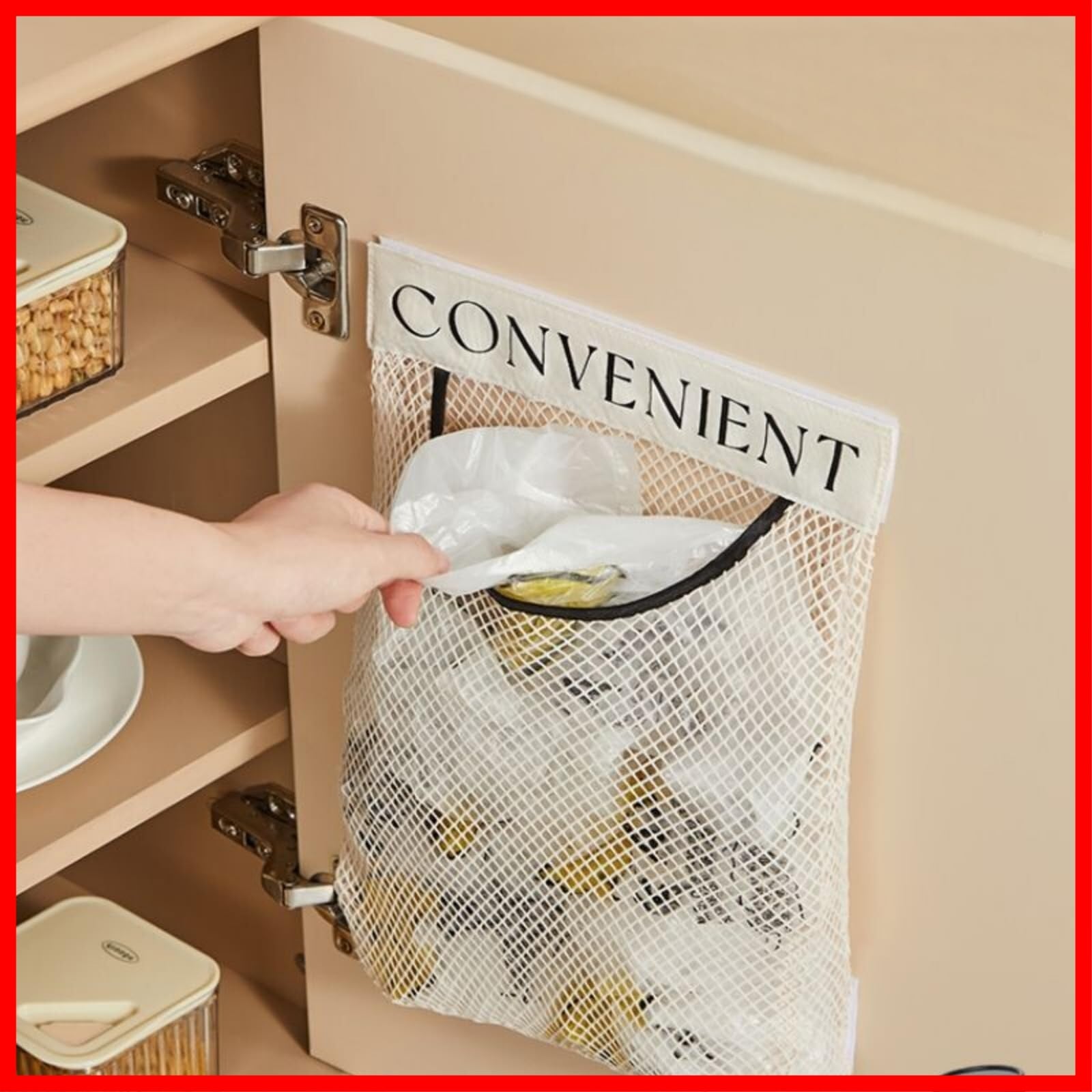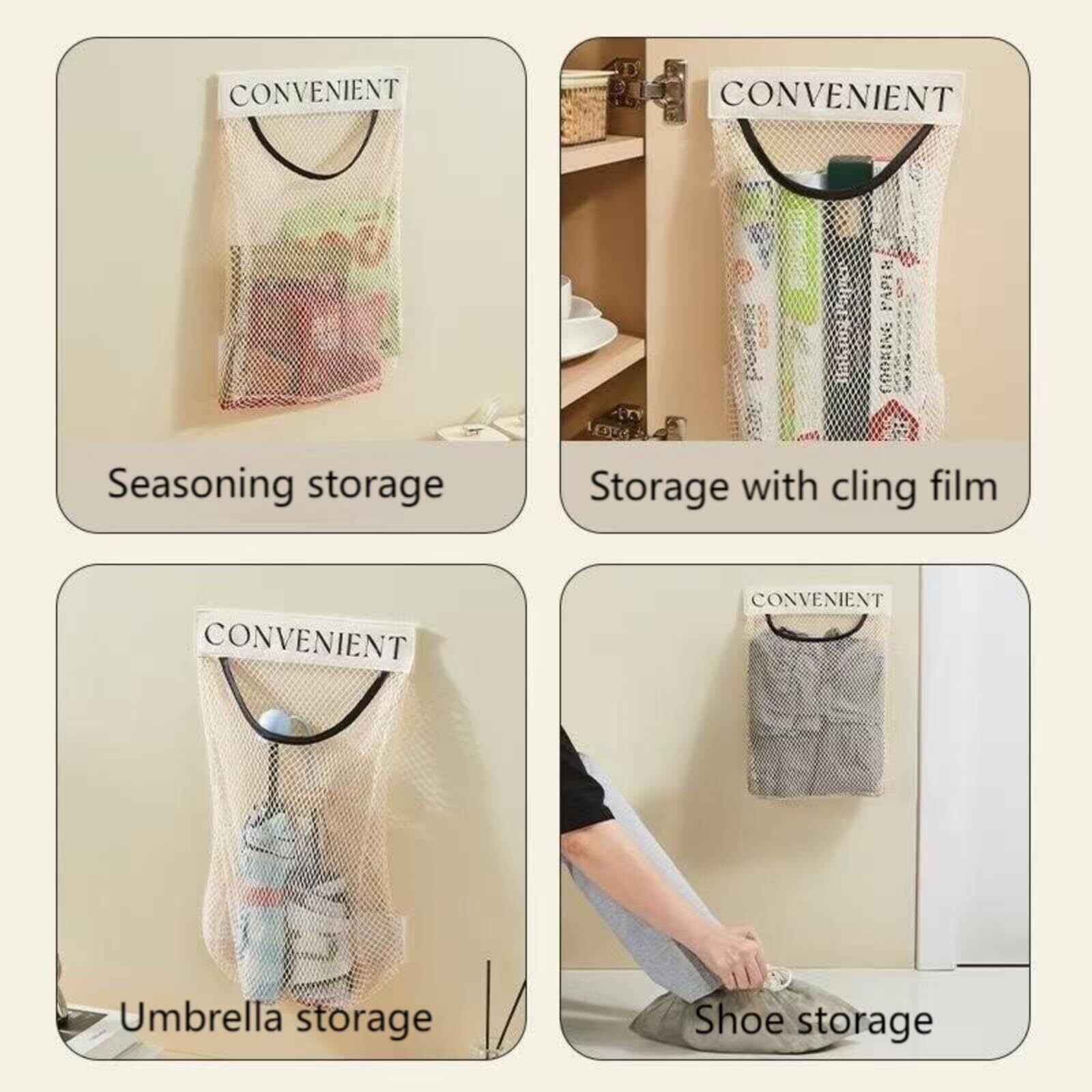 取り出しやすい:伸縮性のあるメッシュバッグが買い物袋が落ちるのを防ぎ、壁にしっかりと固定します。