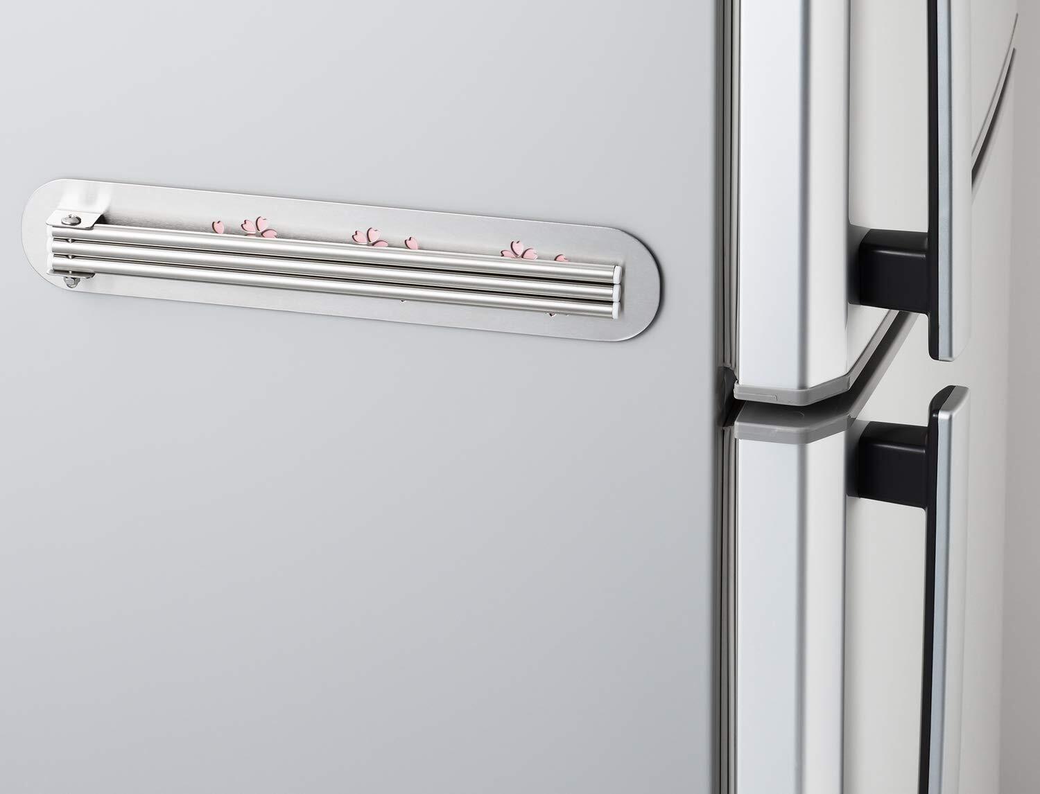 冷蔵庫横などにマグネットでピタッと取り付け、空間を有効活用できる