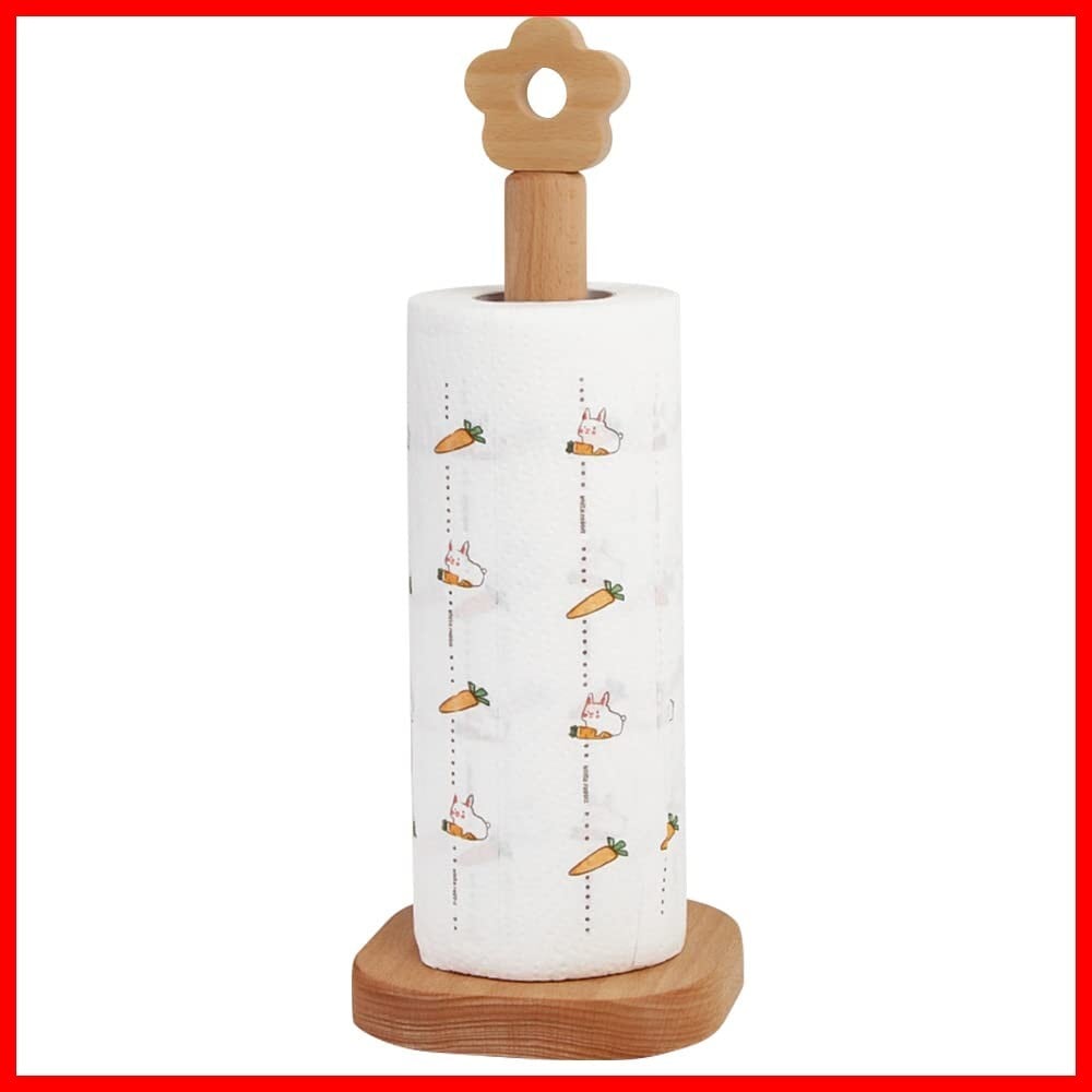 AIDUCHO キッチンペーパーホルダー ペーパータオル ホルダー ロールホルダー 木製 ペーパーホルダー 紙巻器 置き型 台所用品 収納用品 片手で切れる (木色 花)