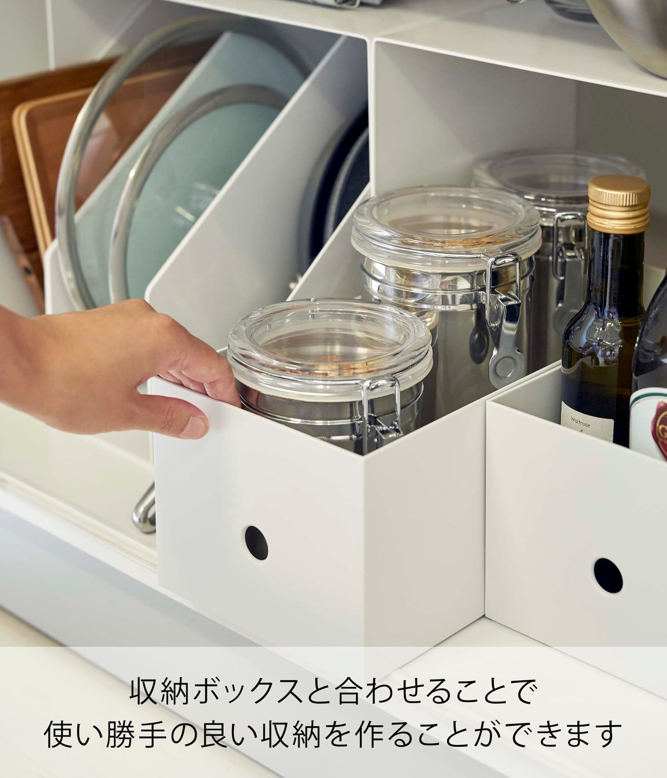 収納ボックスやバスケット、横型のファイルボックスなどの上に置くだけ。