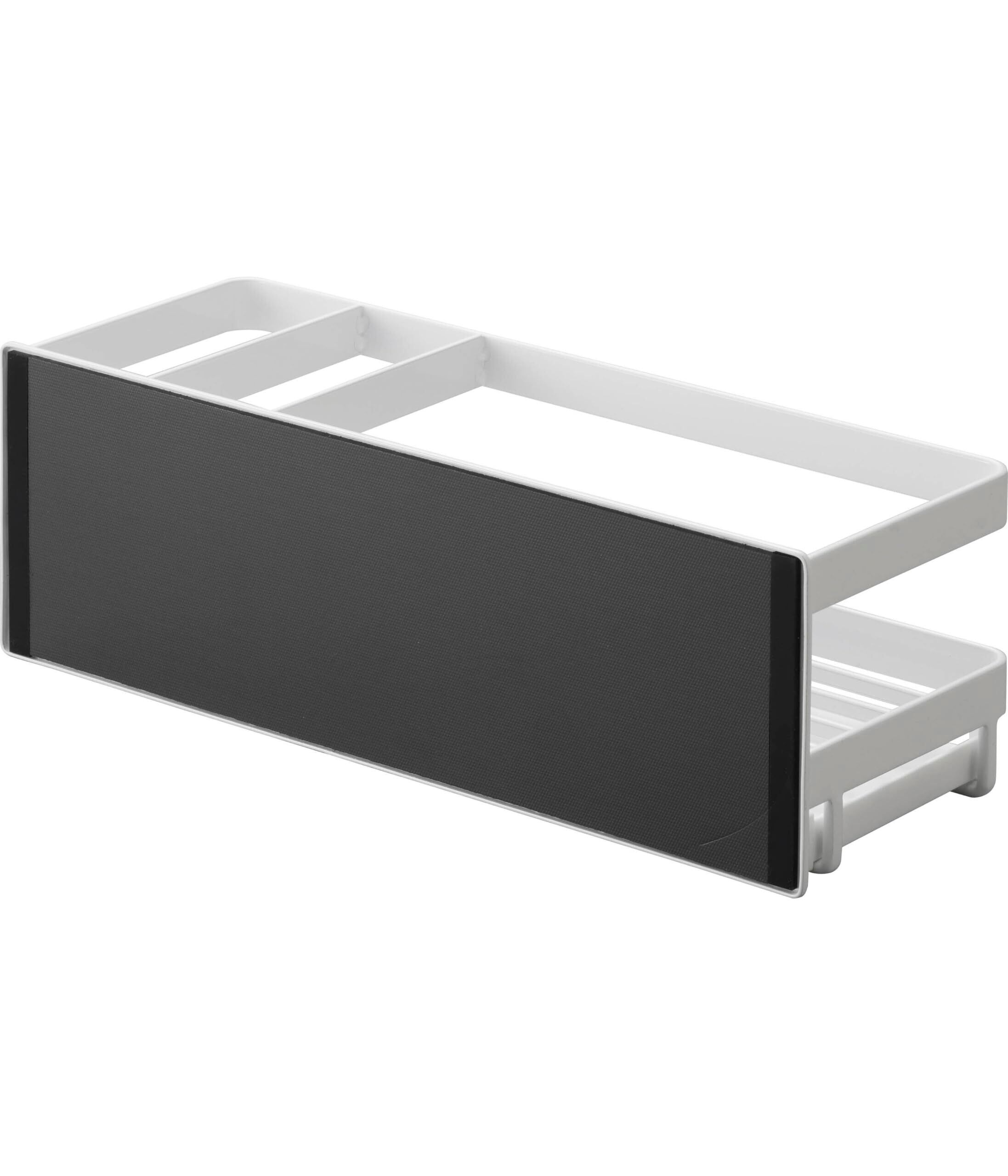 山崎実業(Yamazaki) マグネット スポンジ & ディスペンサーラック トレー付き ホワイト 約W25.5×D9.5×H9cm タワー tower スポンジ置き フック付き 浮かせる収納 3972