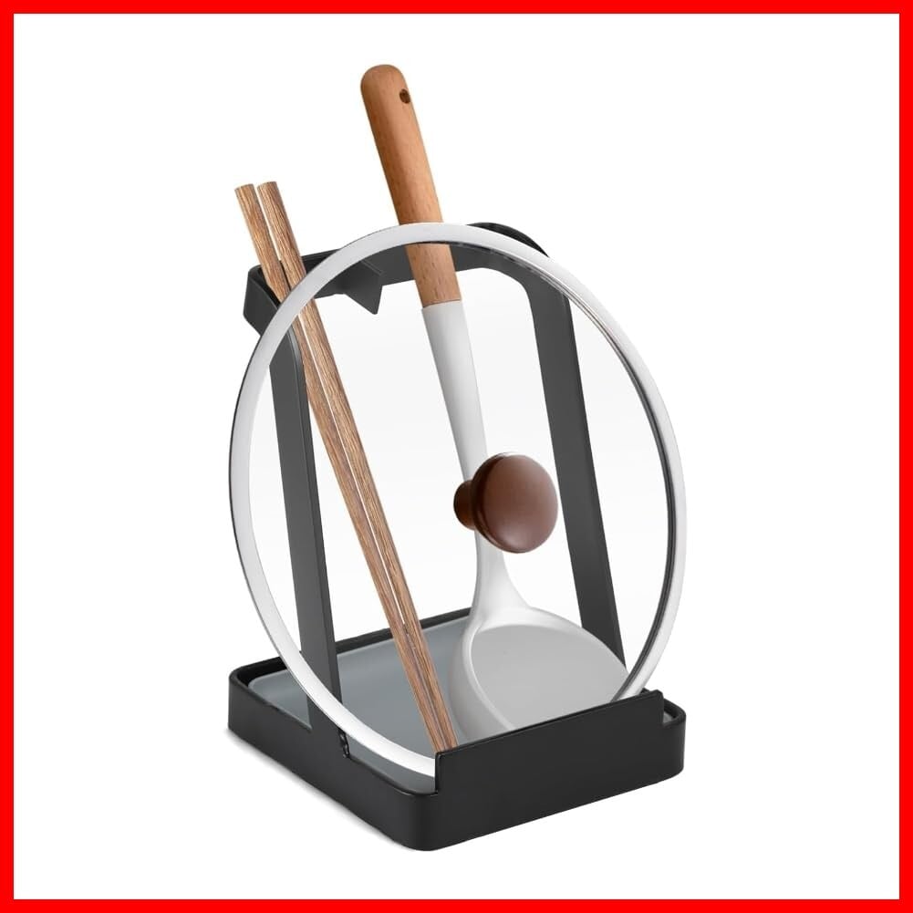 Liebbon お玉 蓋置きスタンド|鍋蓋置き・菜箸・包丁・しゃもじ対応|水切りトレー付き 多機能 調理器具立て (ブラック)