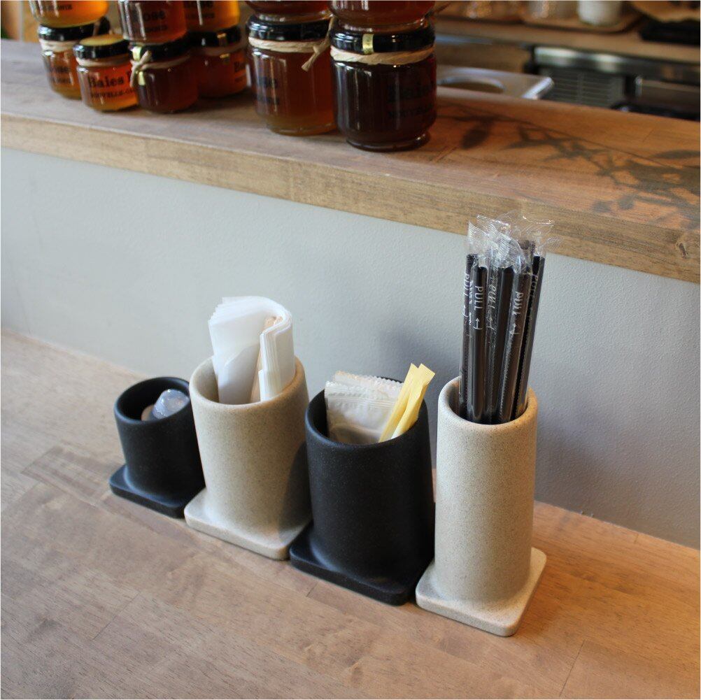 ありそうでなかったサイズモジュールのオーガナイザー。 収納に困るものに合わせてサイズを選び、並べて収納できる。 キッチン、洗面所、リビング、ワークスペースなど、場所によってtsutsu(ツツ)のキャラクターが変化する。 土台がしっかりしているので倒れにくい。 二液性で硬化するポリエステルと天然石をコンポジットしたエコマテリアル。 底はEVA仕様。