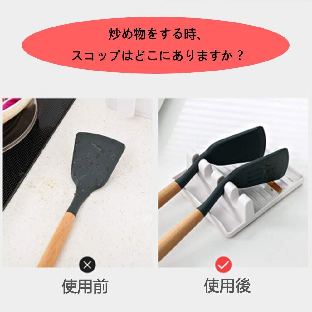 「この『調理器具ホルダー』で、あなたのキッチンを快適で整理された空間に変えてみませんか!」/特徴:多機能なこの調理器具ホルダーは、箸置きやお玉置き、鍋蓋スタンドとして活躍します。素材には滑り止め効果のあるシリコンを使用しており、安定して器具を支えることができます。キッチンの混雑を解消し、使いたい道具をすぐに取り出せる便利さが魅力です。