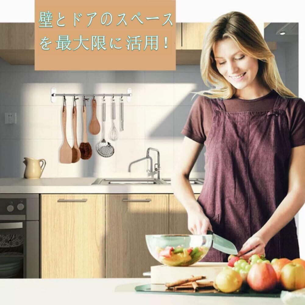 「この『Tengfey キッチンツールフック』で、あなたのキッチンをスッキリ整頓し、使い勝手を向上させてみませんか!」/特徴:高品質なステンレス素材で作られたこのフックは、調理器具やタオルをすっきりと収納できる便利なアイテムです。強力な粘着固定またはビス固定により、どんな壁面にも簡単に取り付けられます。50cm、59.5cm、40.5cmの3サイズから選べ、個々のニーズに合わせた収納が可能です。