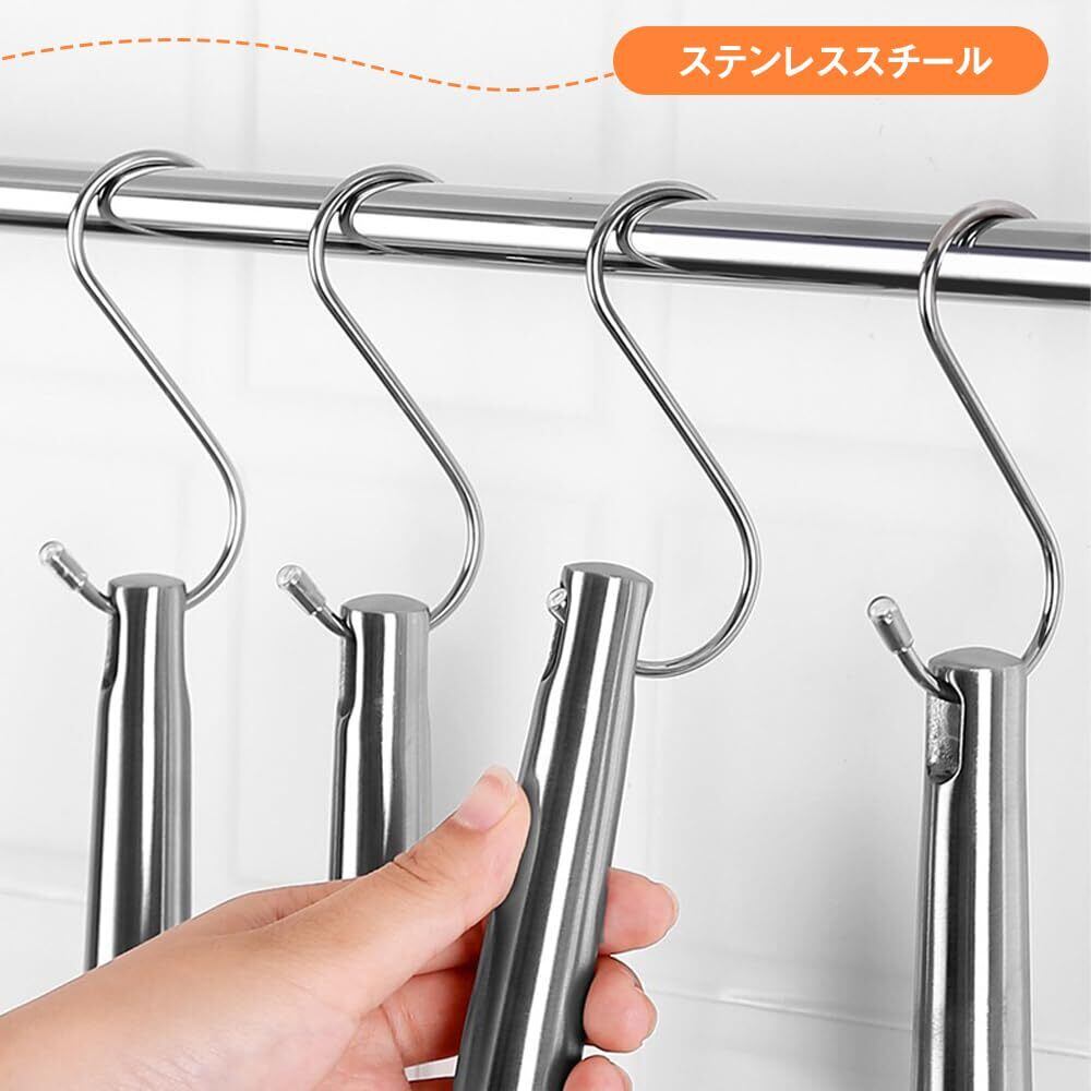 「この『S字フック』で、あなたのキッチンや浴室をスッキリと整理整頓し、使いやすく改善してみませんか!」/特徴:高品質なステンレススチール製のこのS字フックは、防錆仕様であり、湿気の多い場所でも安心してご使用いただけます。脱落防止の設計で、さまざまなアイテムをしっかりと固定できるため、毎日の快適な収納を実現します。