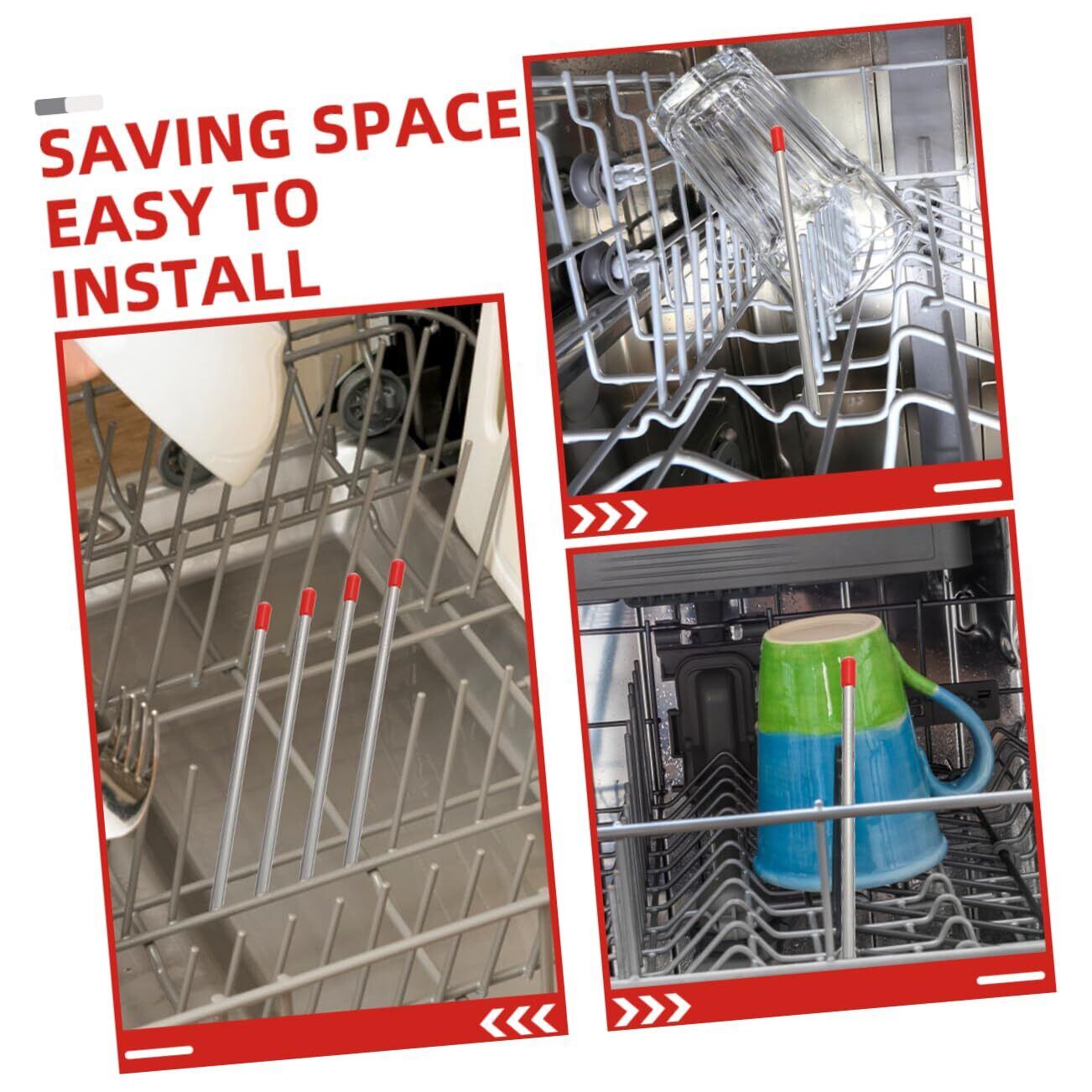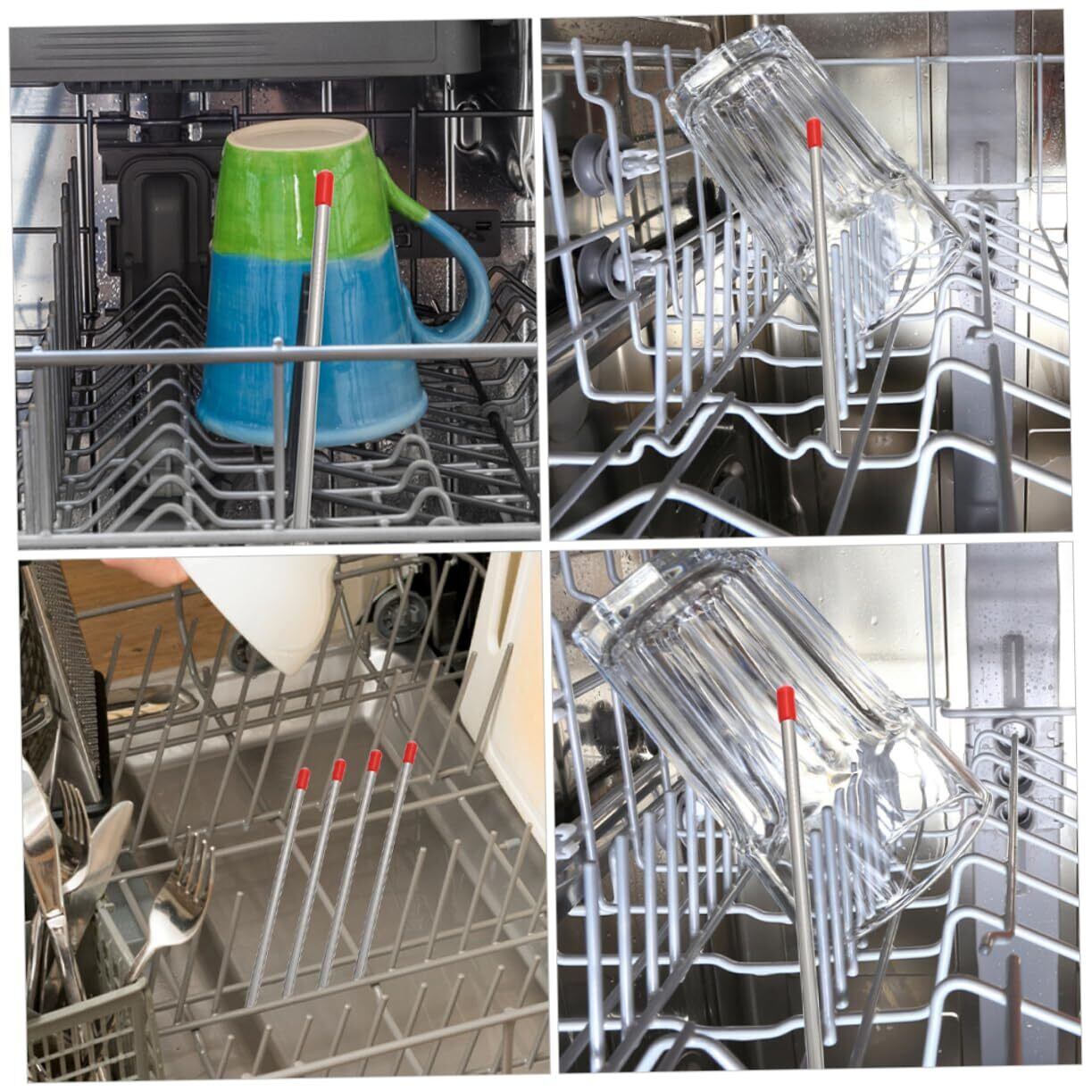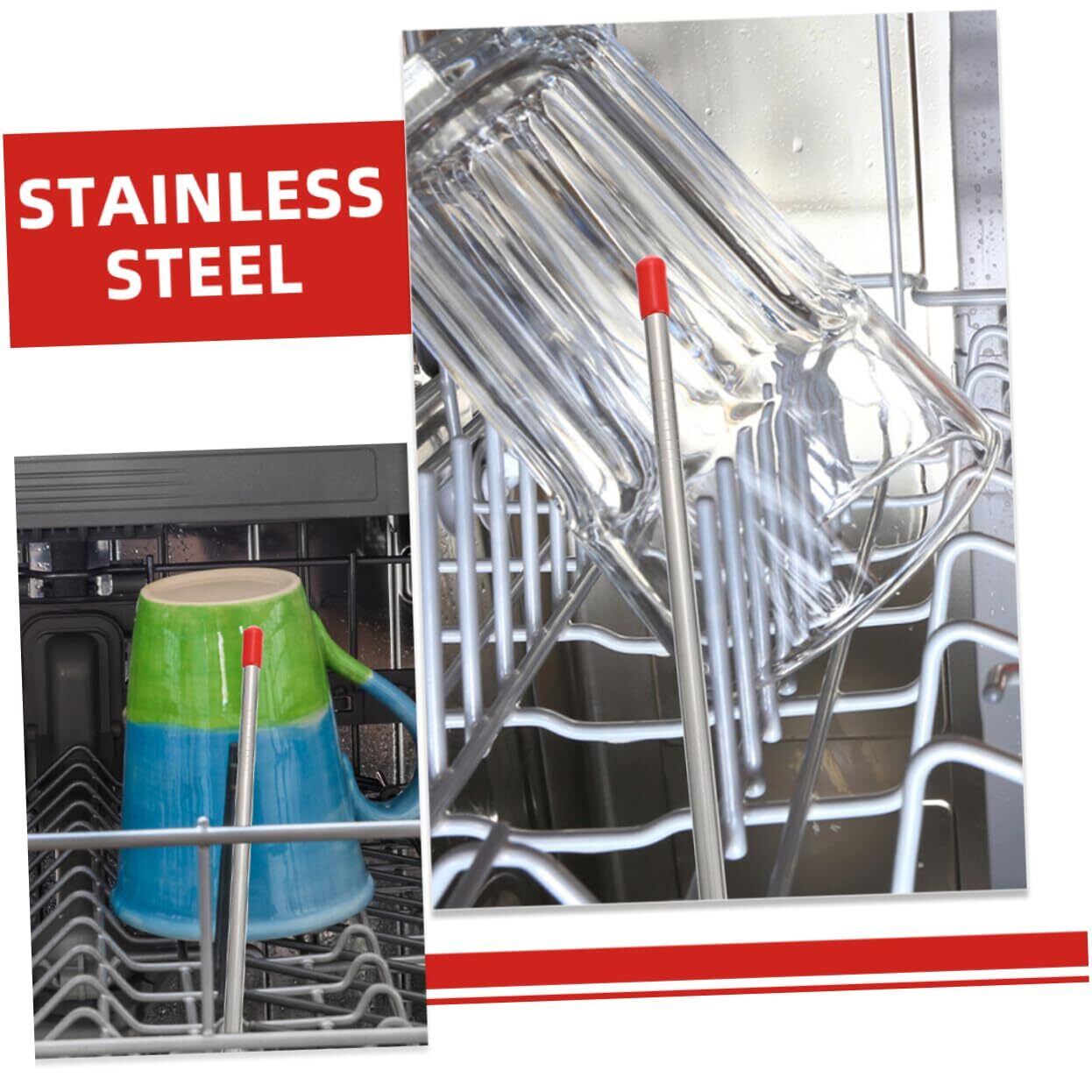 PAMINGONO 6個 食洗機用排水ラック 食器洗い機のボトルホルダー 食器洗い機の付属品 食器洗い機部分 ボトルにスティックを差し込みます 食器洗い機用品 赤 ステンレス鋼