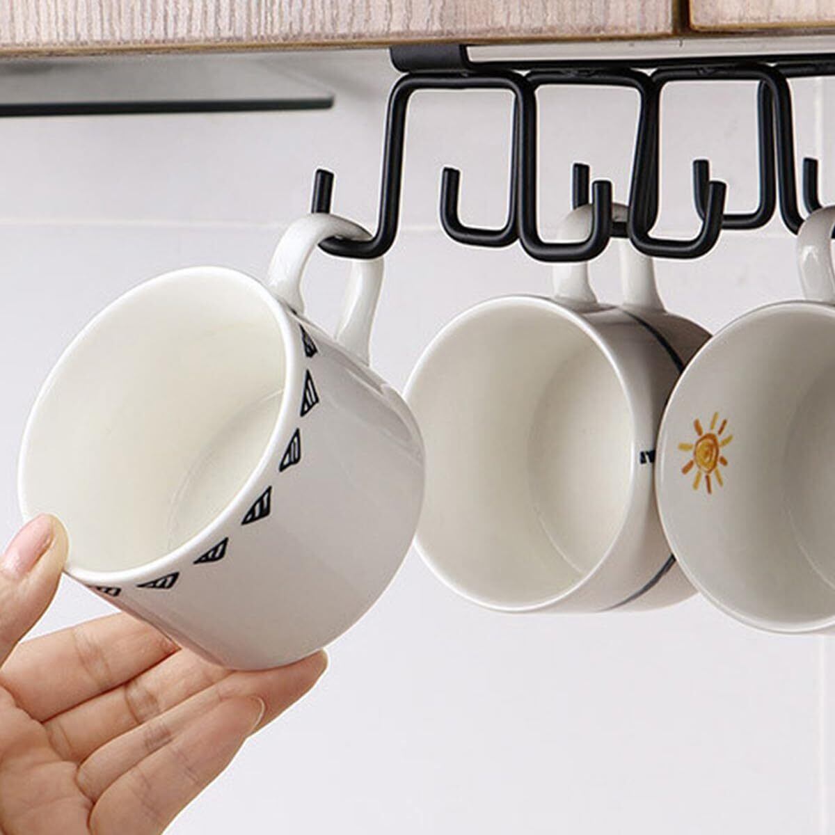 【多機能収納フックハンガー】キッチンキャビネットの下のマグラックは、カップやマグカップを置くだけでなく、好きなキッチン用品を掛けたり、帽子、タオル、食器を掛けたりすることもできます。キッチン、バスルーム、リビングルーム、クローゼットの整理に最適です。