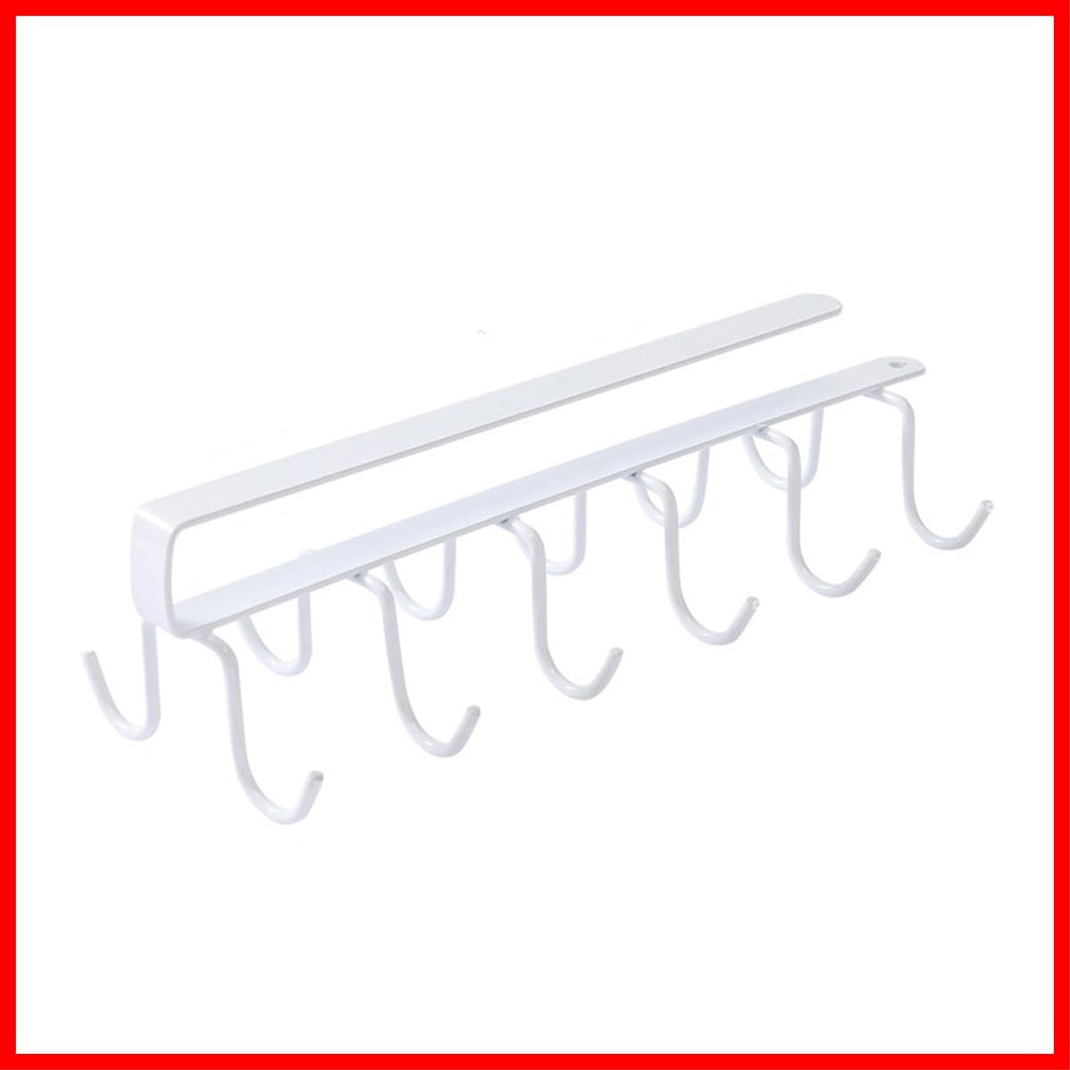 【人気商品】キッチンツールフック カップハンガー 戸棚下キッチンツールフック 6連フック 省スペース 穴あけ不要 マグカップホルダー 吊り下げラック 棚下マグフック 調理器具 キッチン用品収納フック (ホワイト,1pcs)