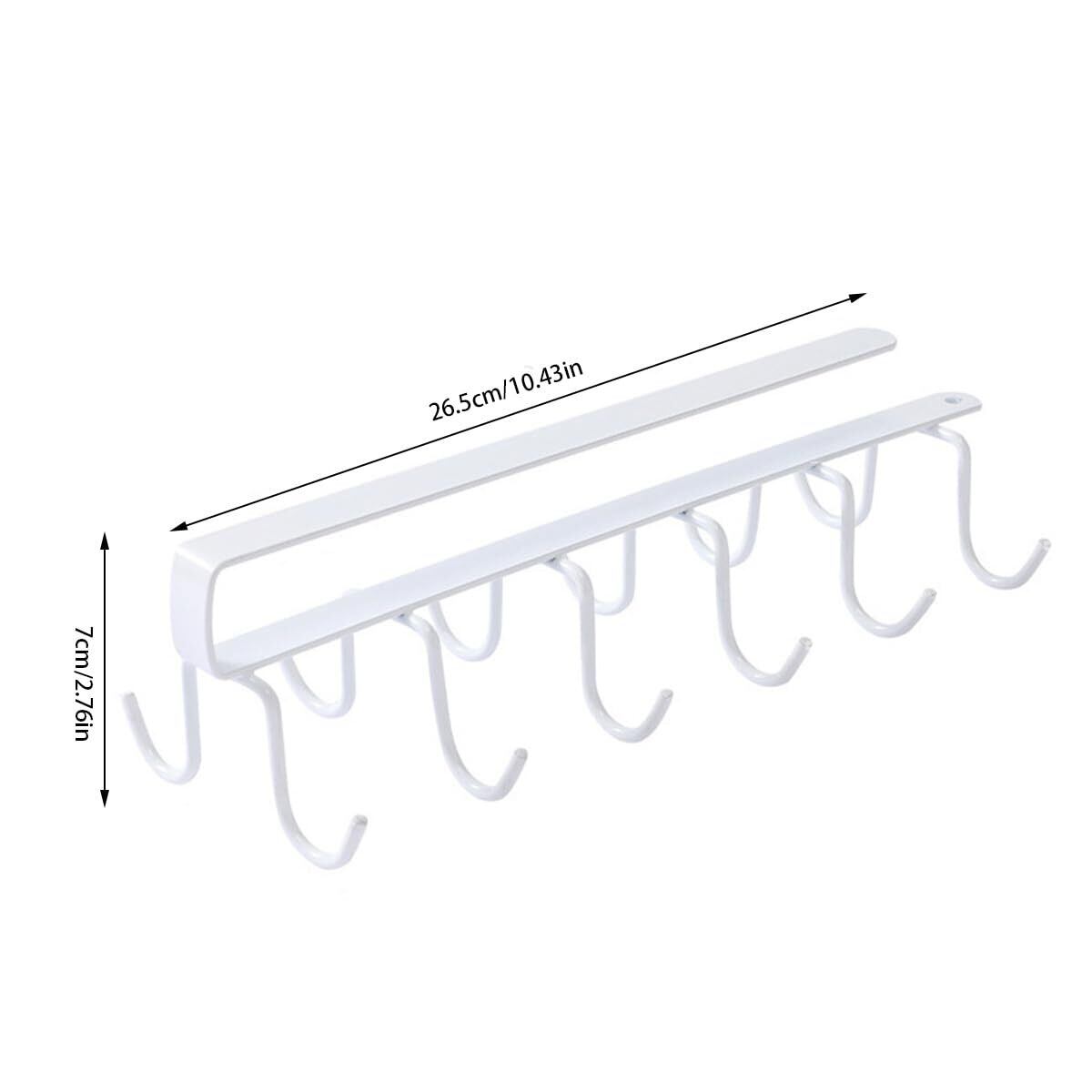 キッチンツールフック カップハンガー 戸棚下キッチンツールフック 6連フック 省スペース 穴あけ不要 マグカップホルダー 吊り下げラック 棚下マグフック 調理器具 キッチン用品収納フック (ホワイト,1pcs)