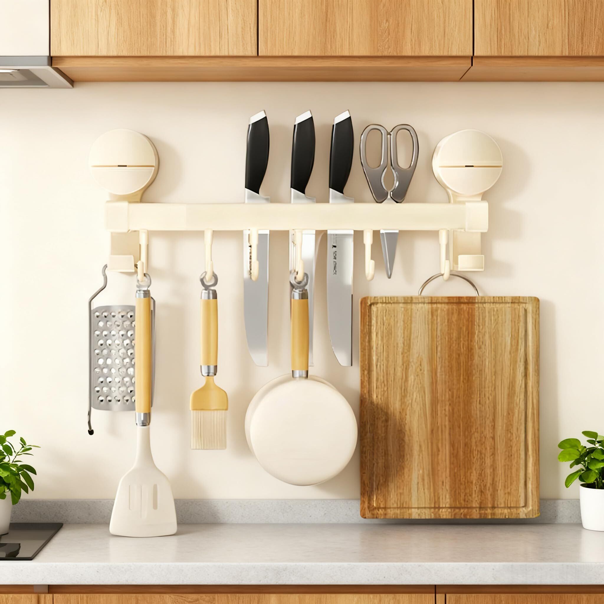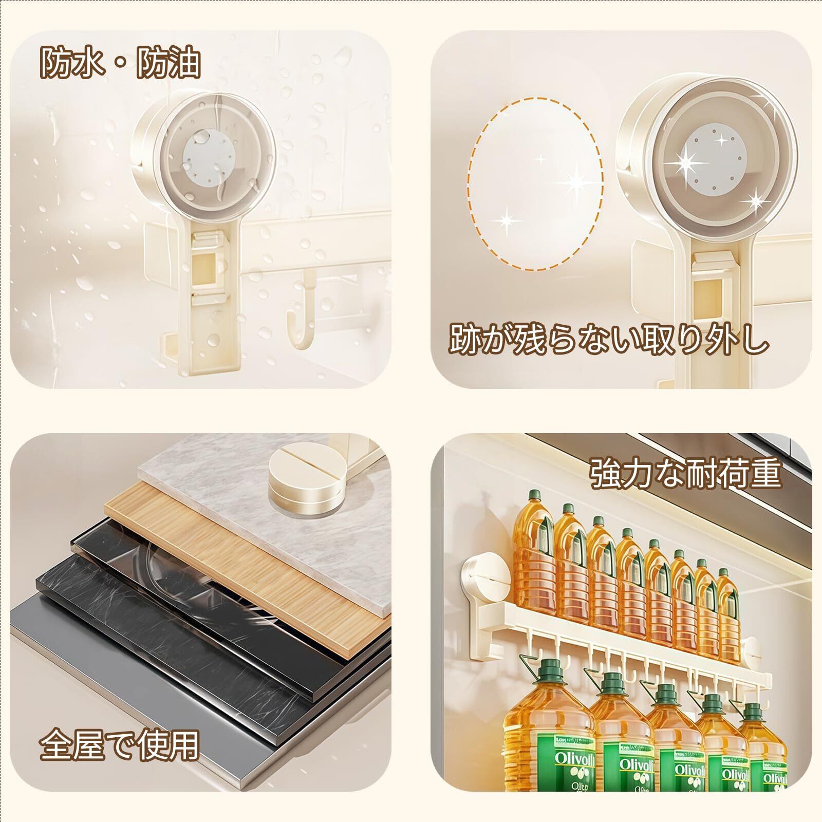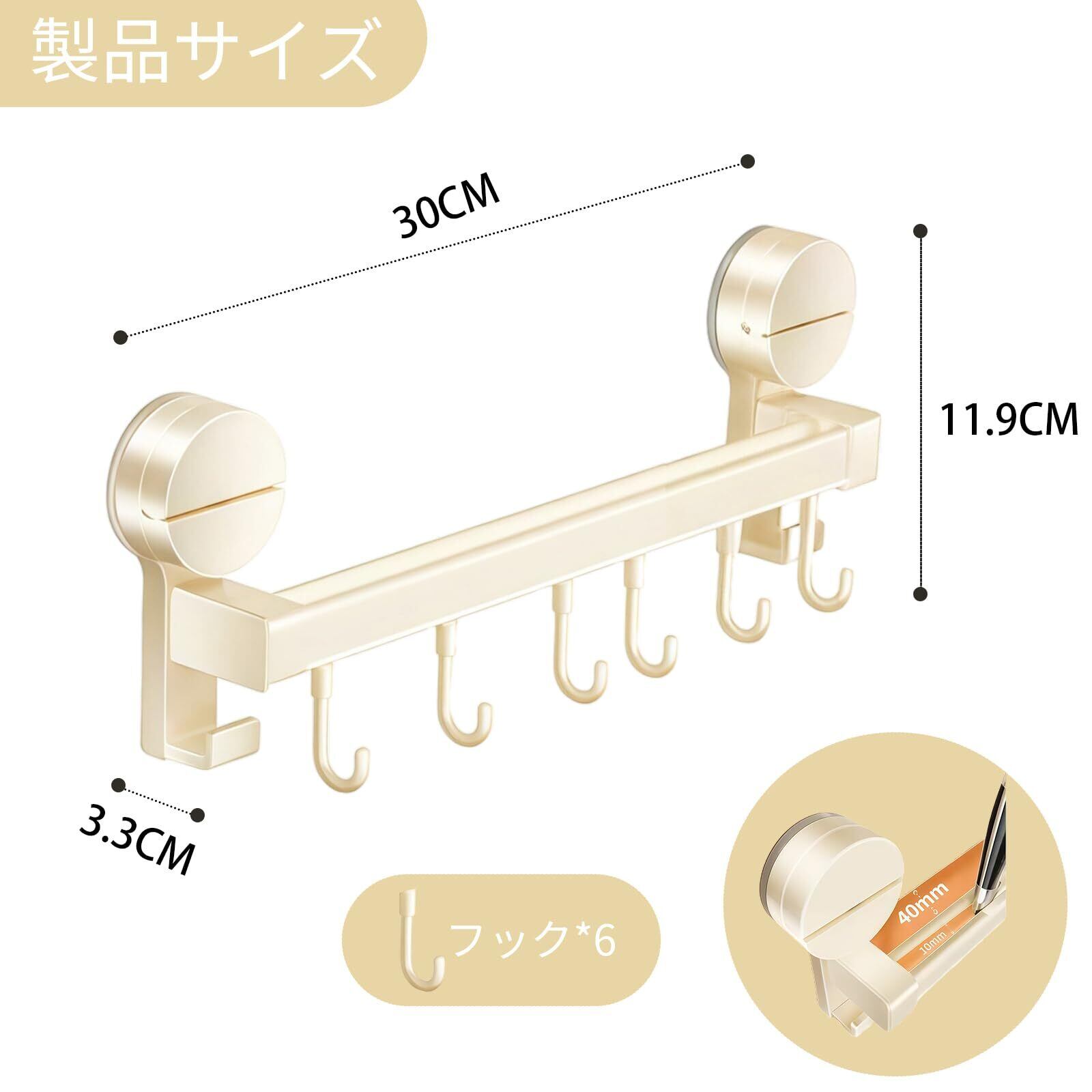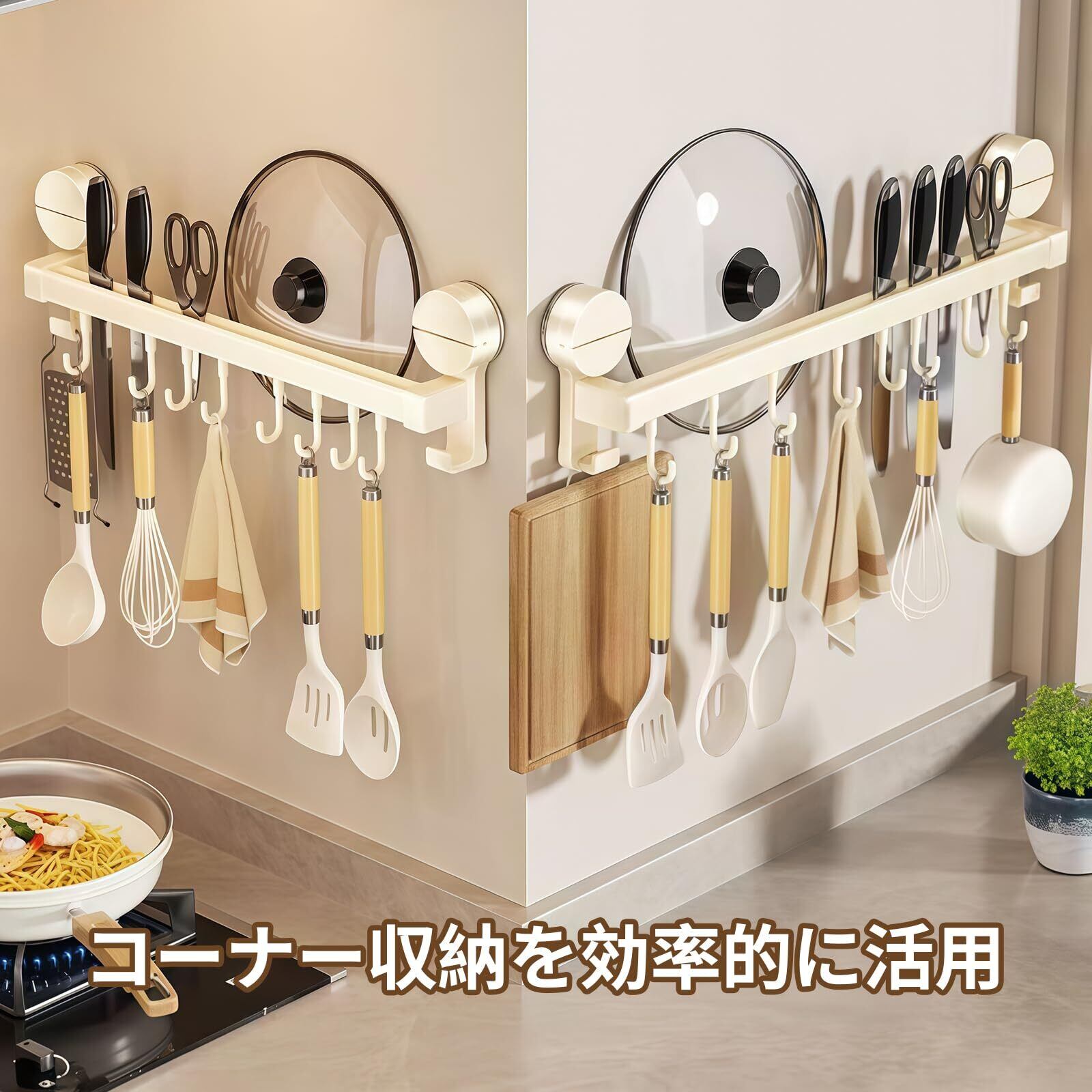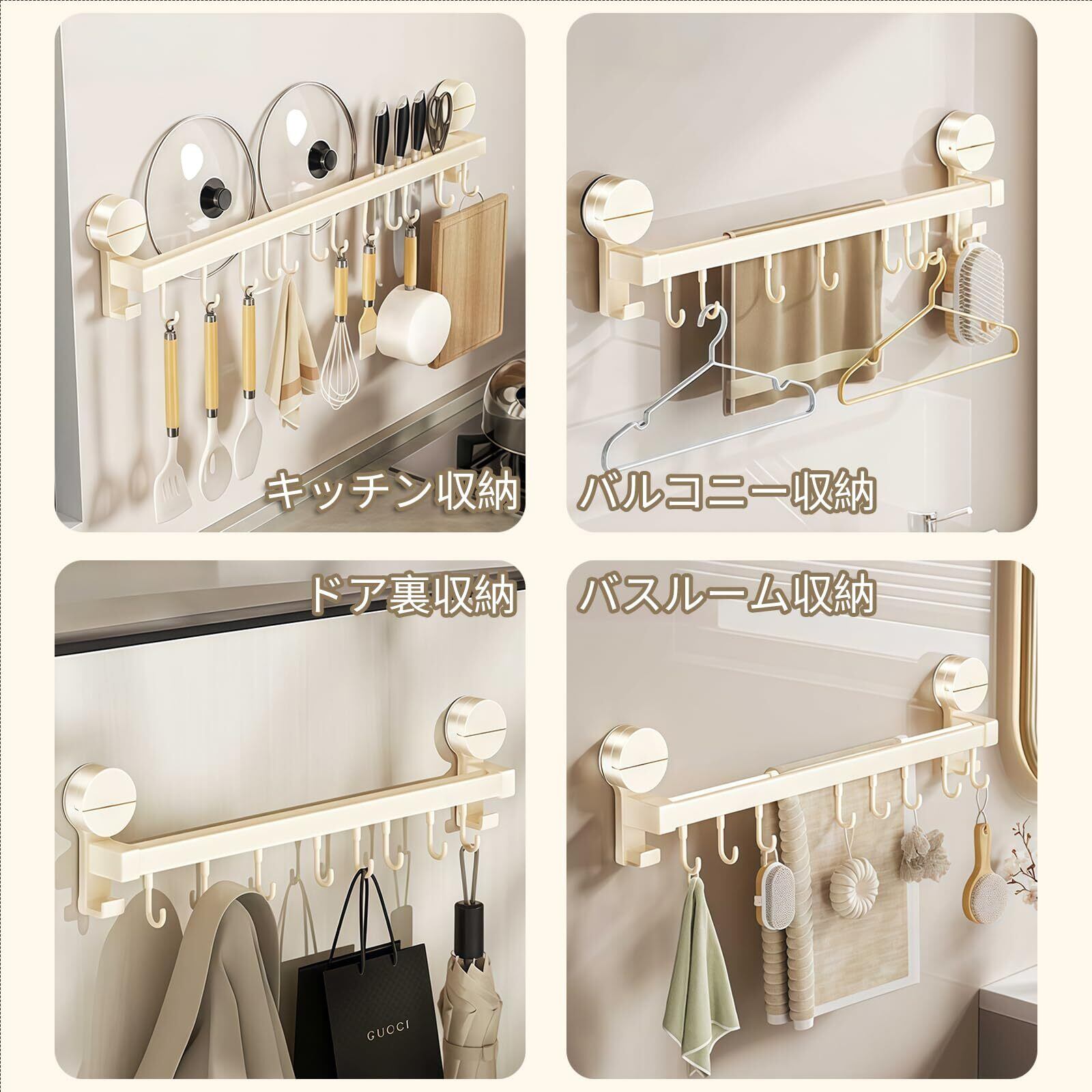 【在庫セール】YipuVR キッチンツールフック 壁掛け 強力吸盤 台所 収納 キッチン収納 防水防錆 高耐荷重 取り外し可能 鍋蓋置き 壁を傷つけず穴あけ不要 ダブルバー 6個可動式フック 30cm 金属 アルミニウム (ミルクホワイト) | Cherry Blossoms