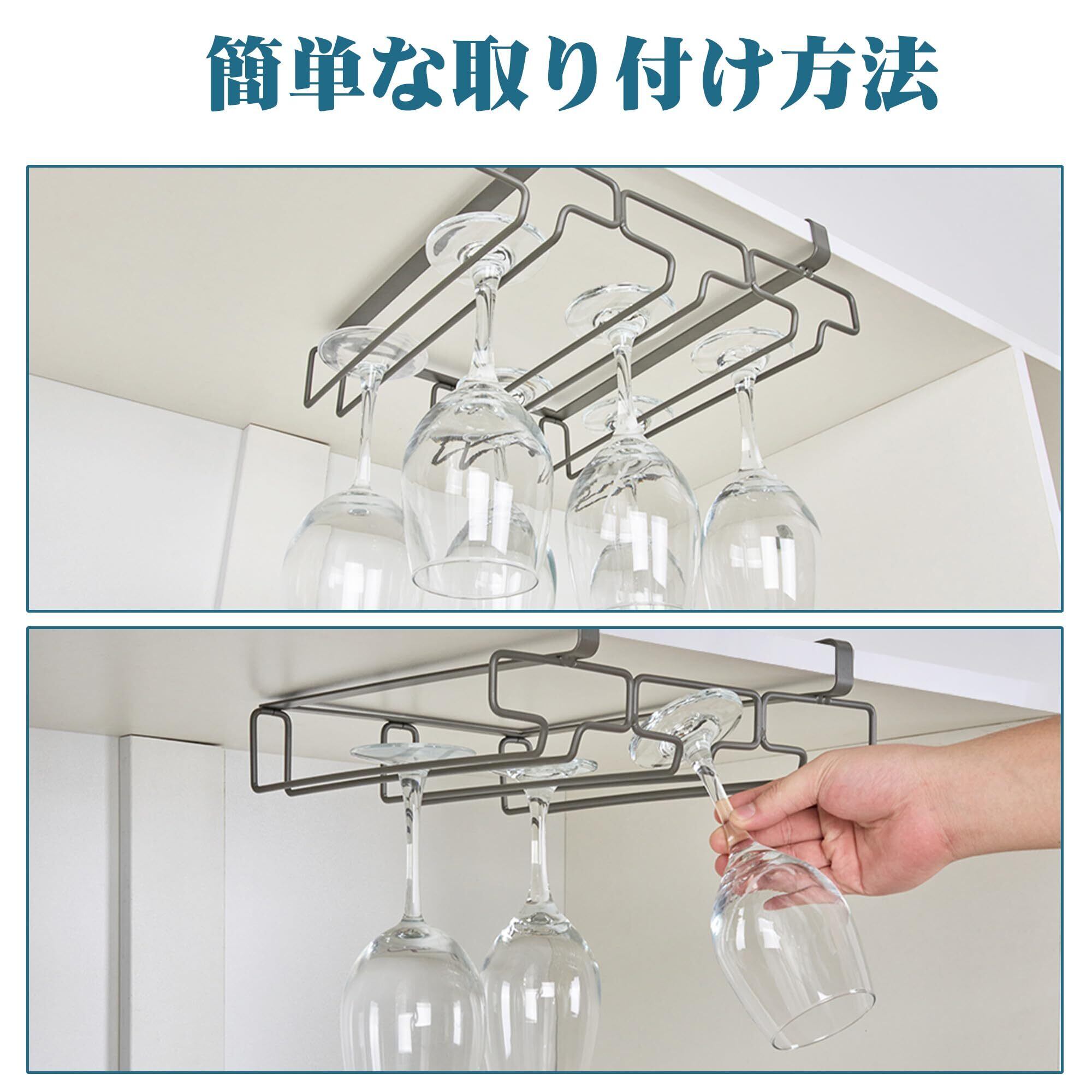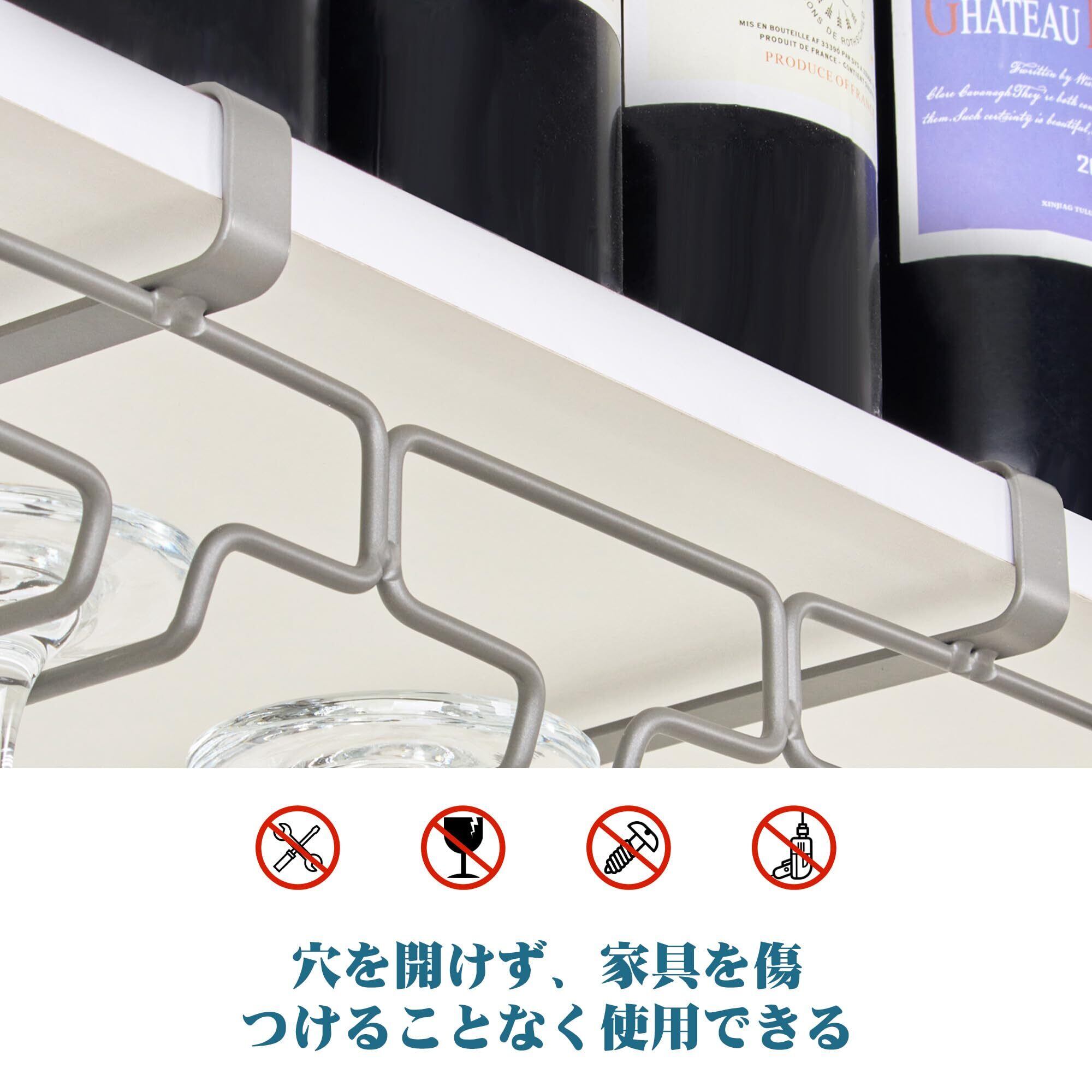 【簡単な設置方法】吊り下げ式ワイングラスホルダーは、釘やネジを使わず、棚板に差し込むだけの簡単設置です。工具不要で誰でも手軽に取り付け可能です。取り外しも簡単なので、引っ越しやレイアウト変更にも柔軟に対応できます。