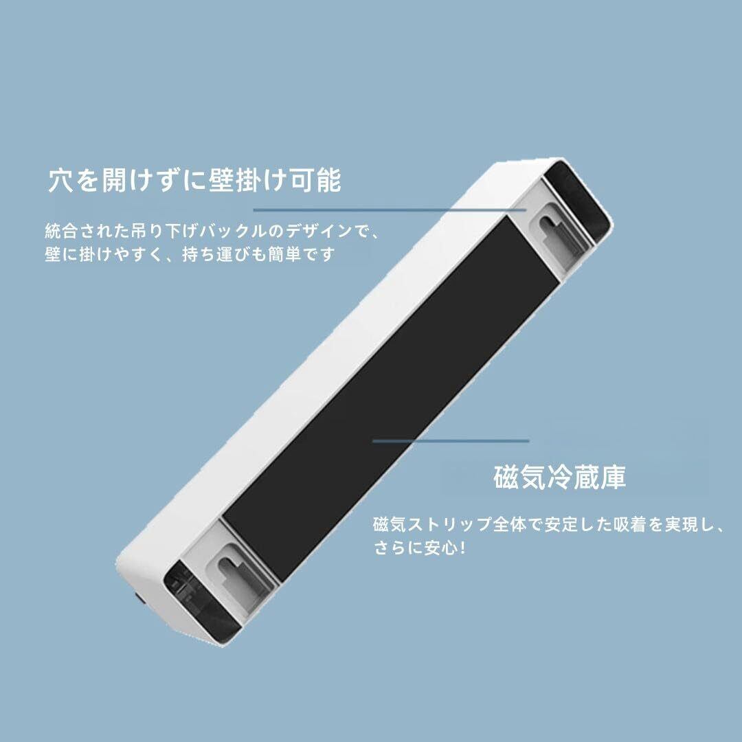 底部に搭載されたマグネットは、強力に壁や冷蔵庫に固定され、場所を取らずに収納できます。使用後は、すぐに取り出せるため、時短にもつながります。