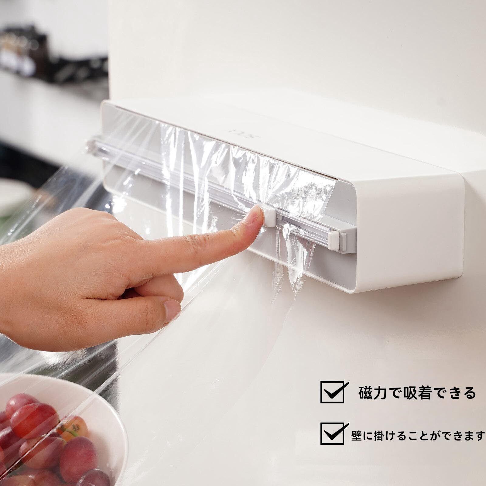 【特価セール】zjdgweh ラップホルダー ラップケース ラップカッター マグネット カッター付きラップケース しがみつくラップディスペンサー スライドカッター キッチリ切れる 壁に取り付け 再利用可能 双方向切断 キッチン箔/フィルムディスペンサー (グレー) | Cherry Blossoms