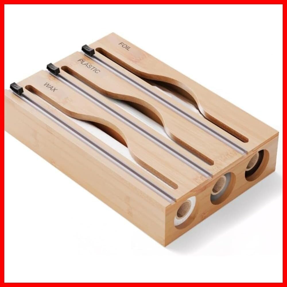 【整理された美しい】 この竹製ラップオーガナイザーディスペンサーホルダーボックスで、キッチン収納をすっきり整理しましょう。 アルミホイルオーガナイザーは、様々なラップキッチン収納整理アクセサリー用に設計されています。