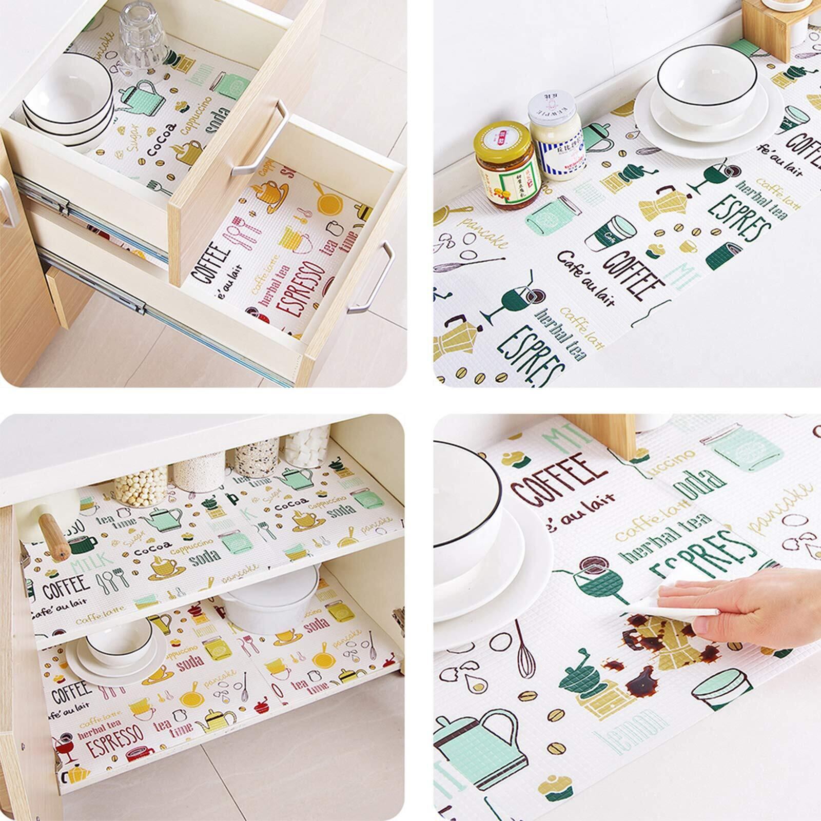 【環境にやさしい材質&吸音】この食器棚シートは優れた材料を採用しており、効果的に湿気を防ぐことができ、乾燥を維持します。吸音性もあり、ガチャガチャ食器音の吸音効果。使用中、器具との摩擦を減り、愛用の家具などを効果的に保護、長期間使用できます。