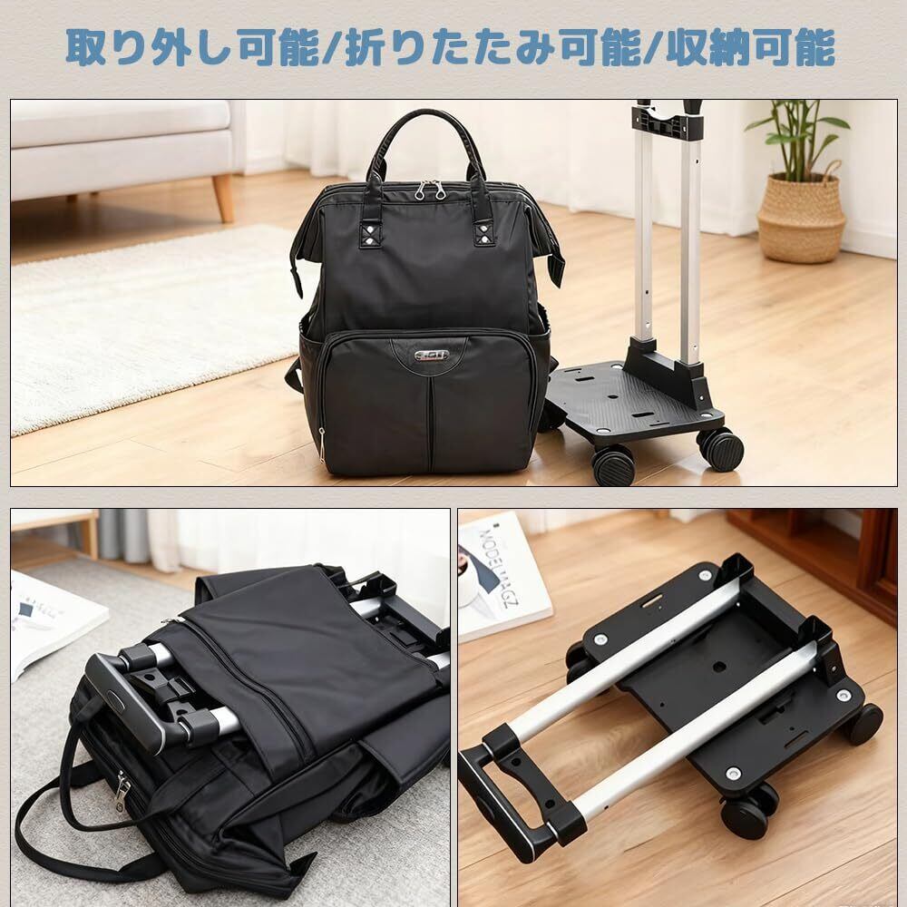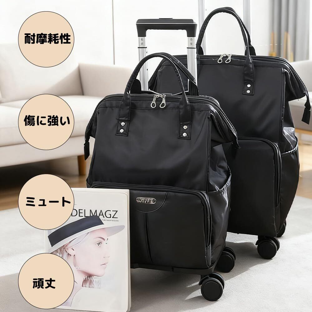 このキャリーバッグは、ショッピング、旅行、そして日常生活でのさまざまなシーンで活躍します。シンプルなブラックカラーが、どんなファッションにも合わせやすいのもポイントです。