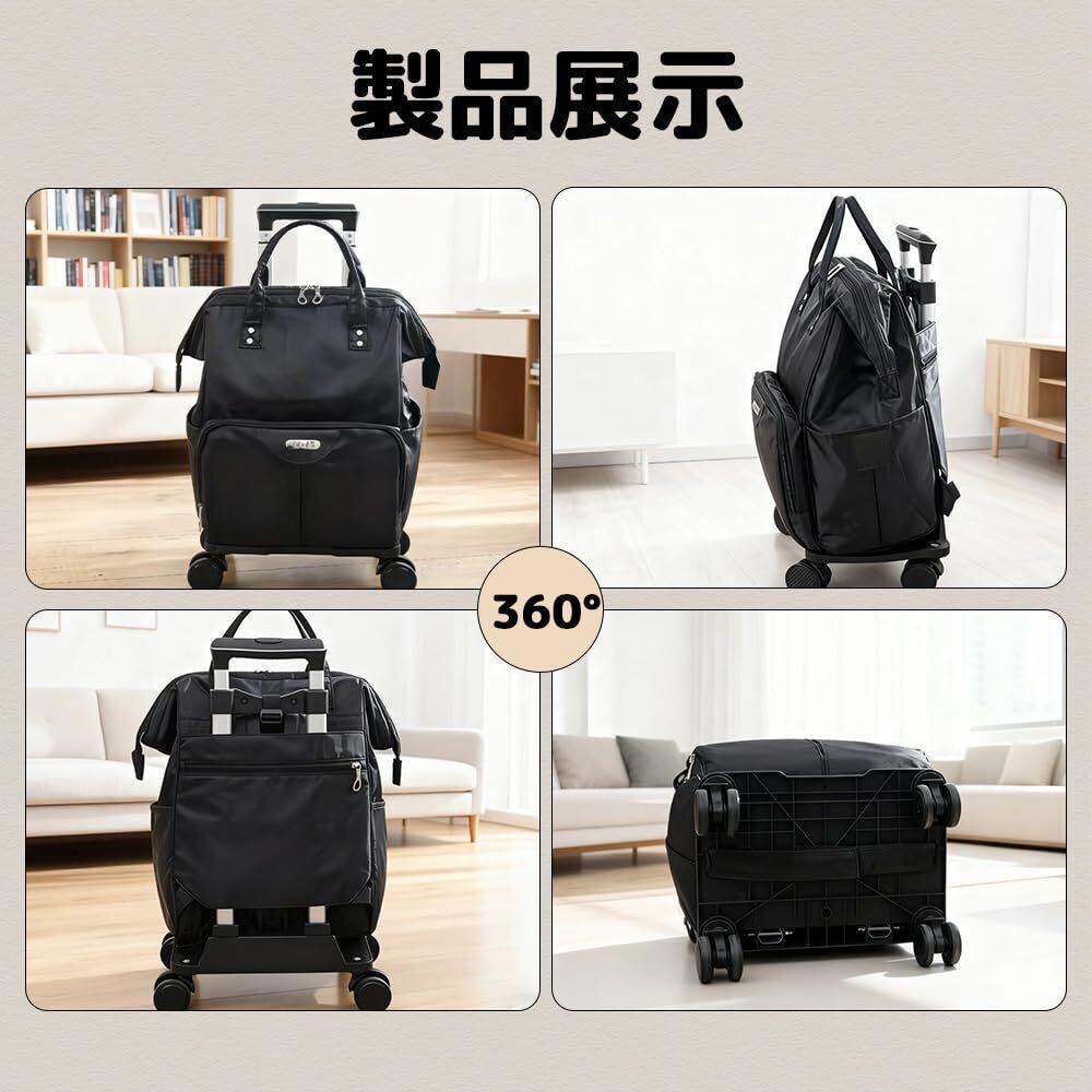 [HarnyLoom] キャリーバッグ 買い物キャリーカート 旅行カート バックパック ユニバーサルホイール付き折りたたみトロリー 軽量で折りたたみ可能なショッピングカート 4輪 ハンドバッグ バックパック 折りたたみ式スーツケース 多機能で収納に便利 旅行 ショッピング その他のシナリオに適しています (ブラック, スモール)