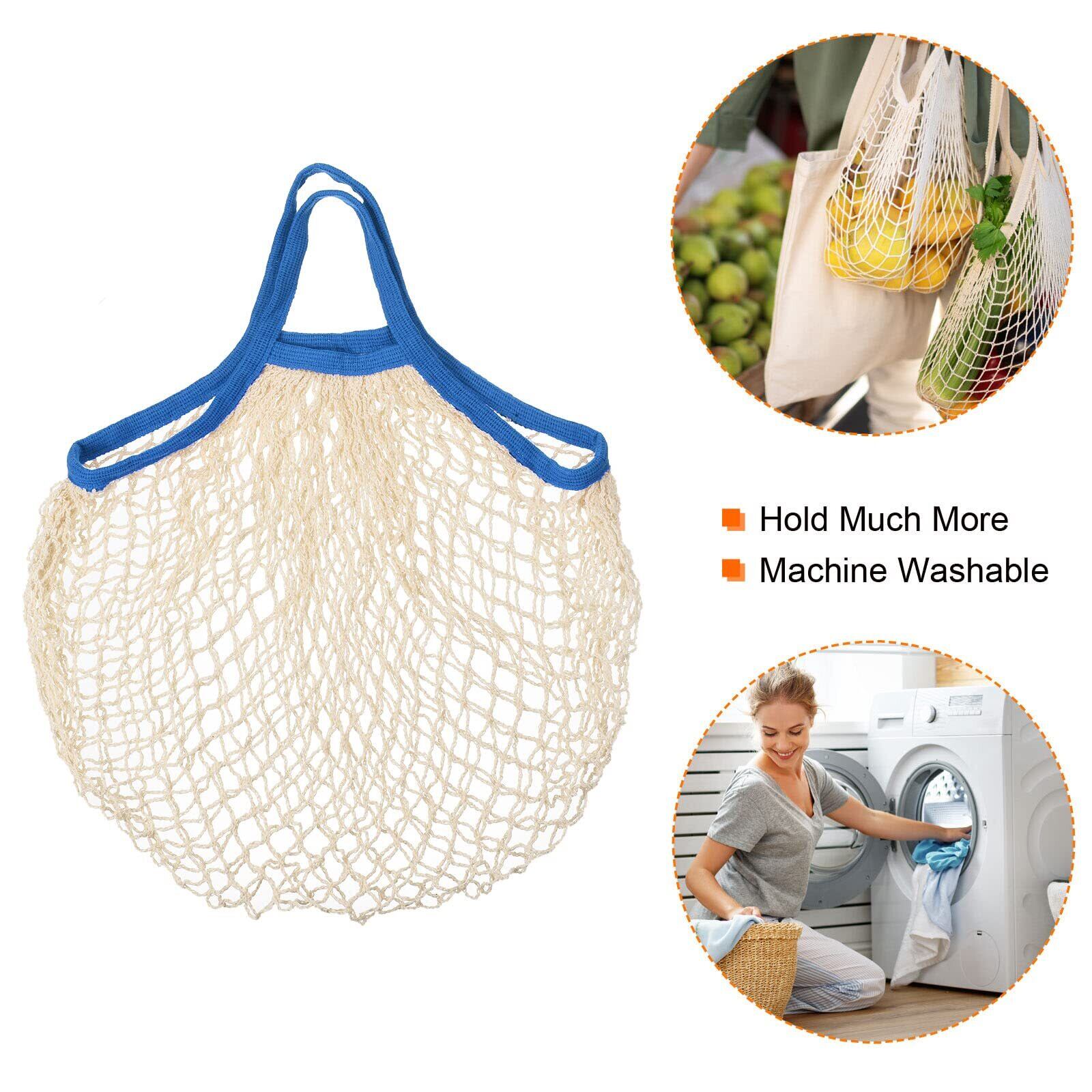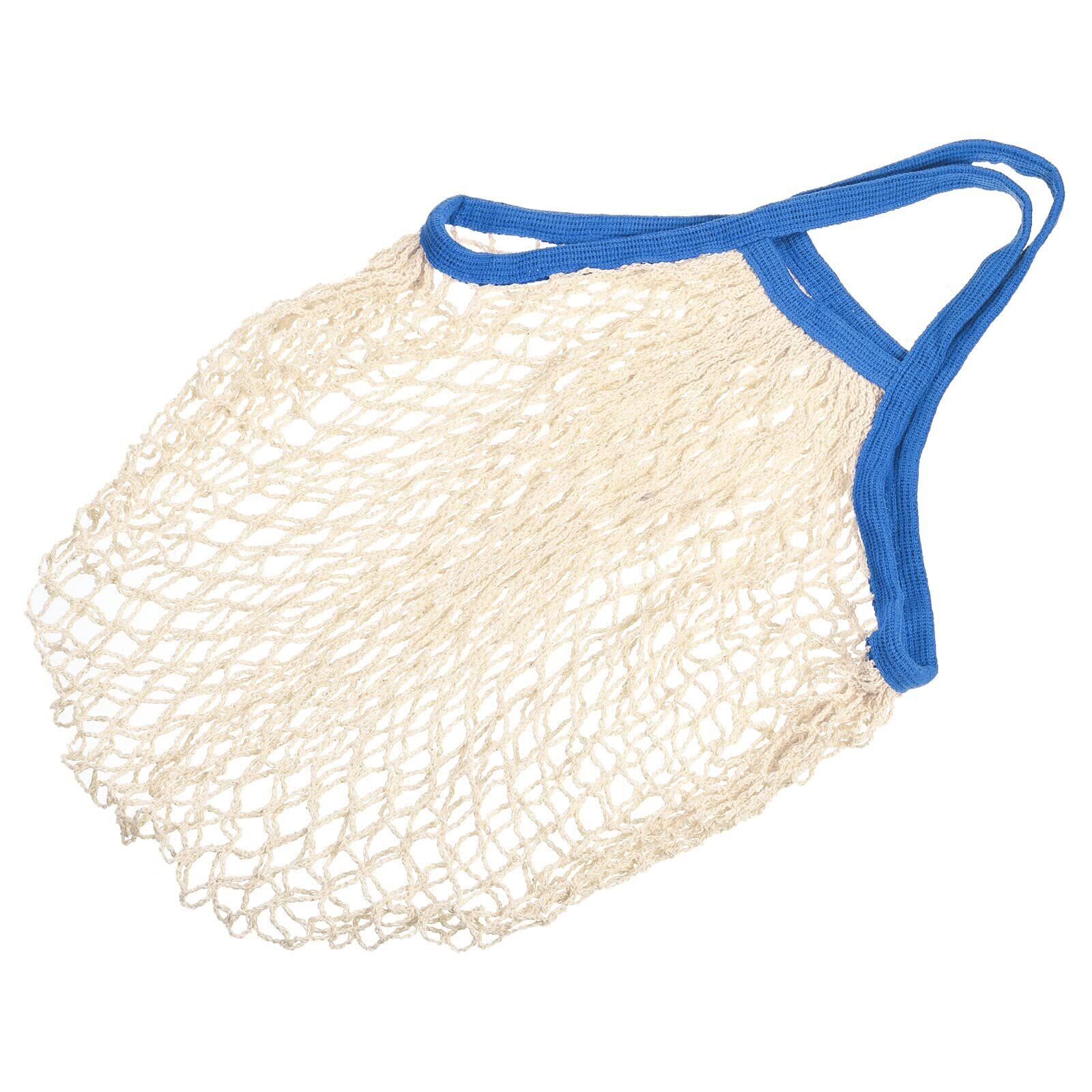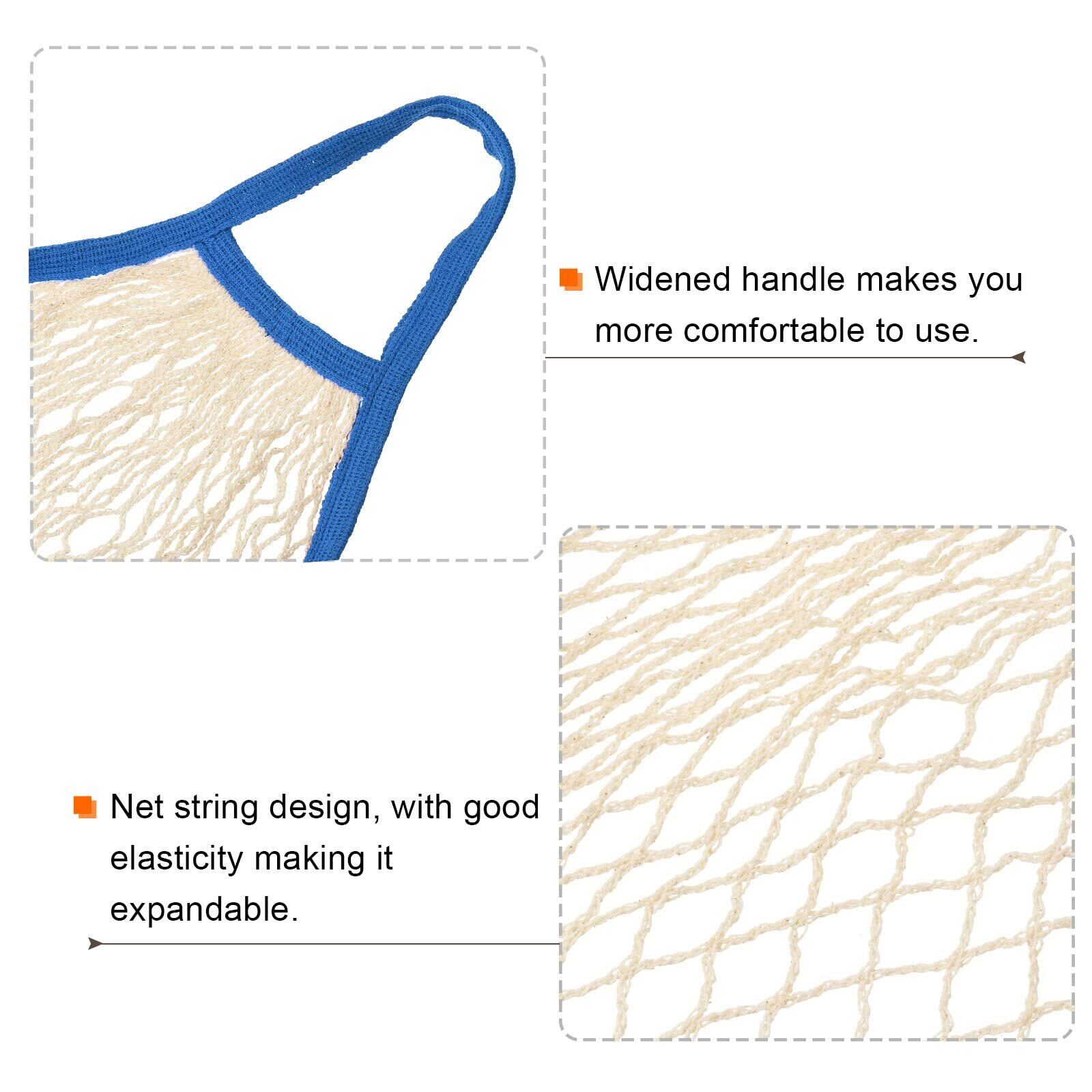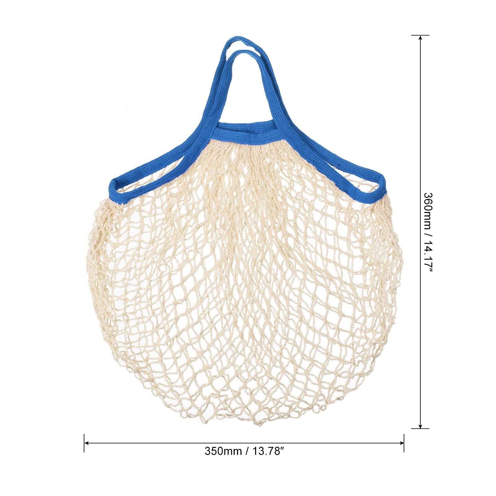 uxcell コットンメッシュバッグ, 360 x 350 mm 再利用可能 ウォッシャブル メッシュ ネットストリング食料品バッグオーガナイザー 果物 野菜 お買い物用 ブルー ホワイト