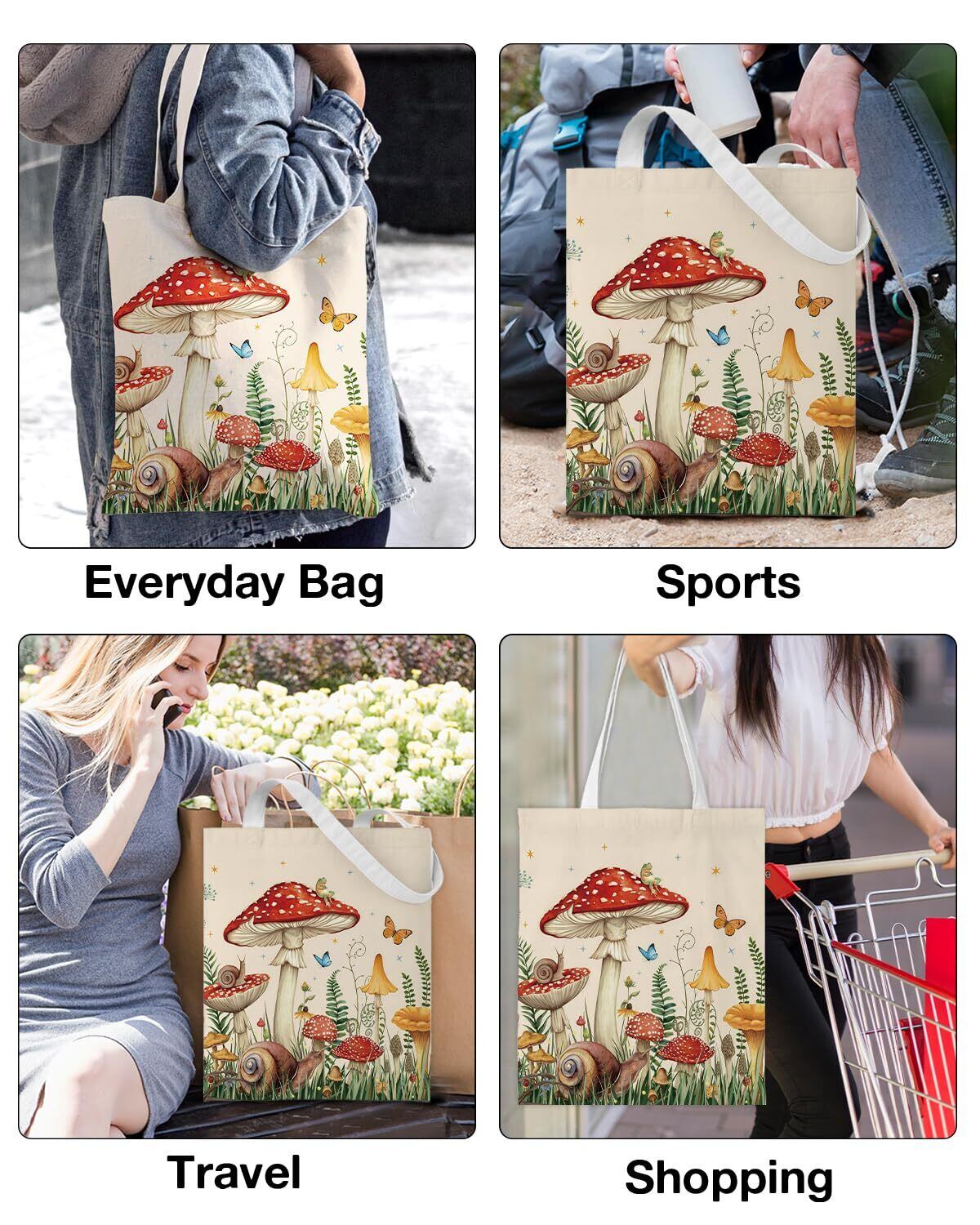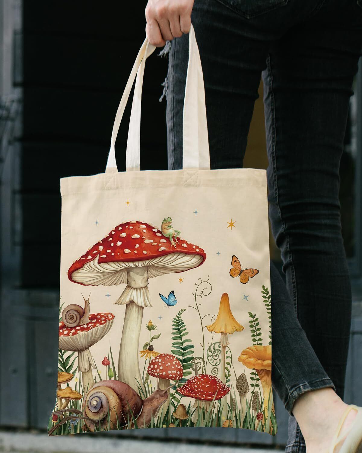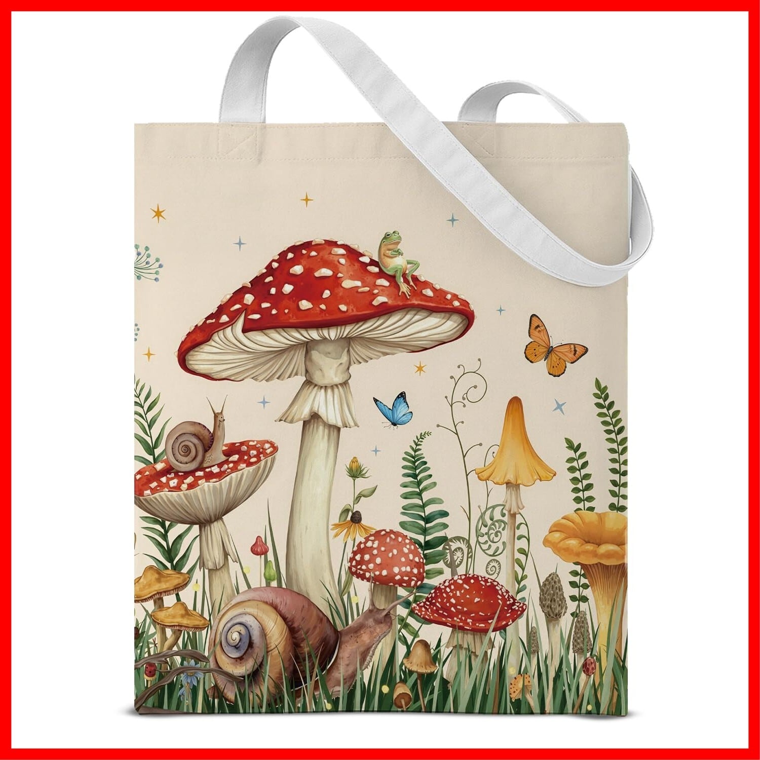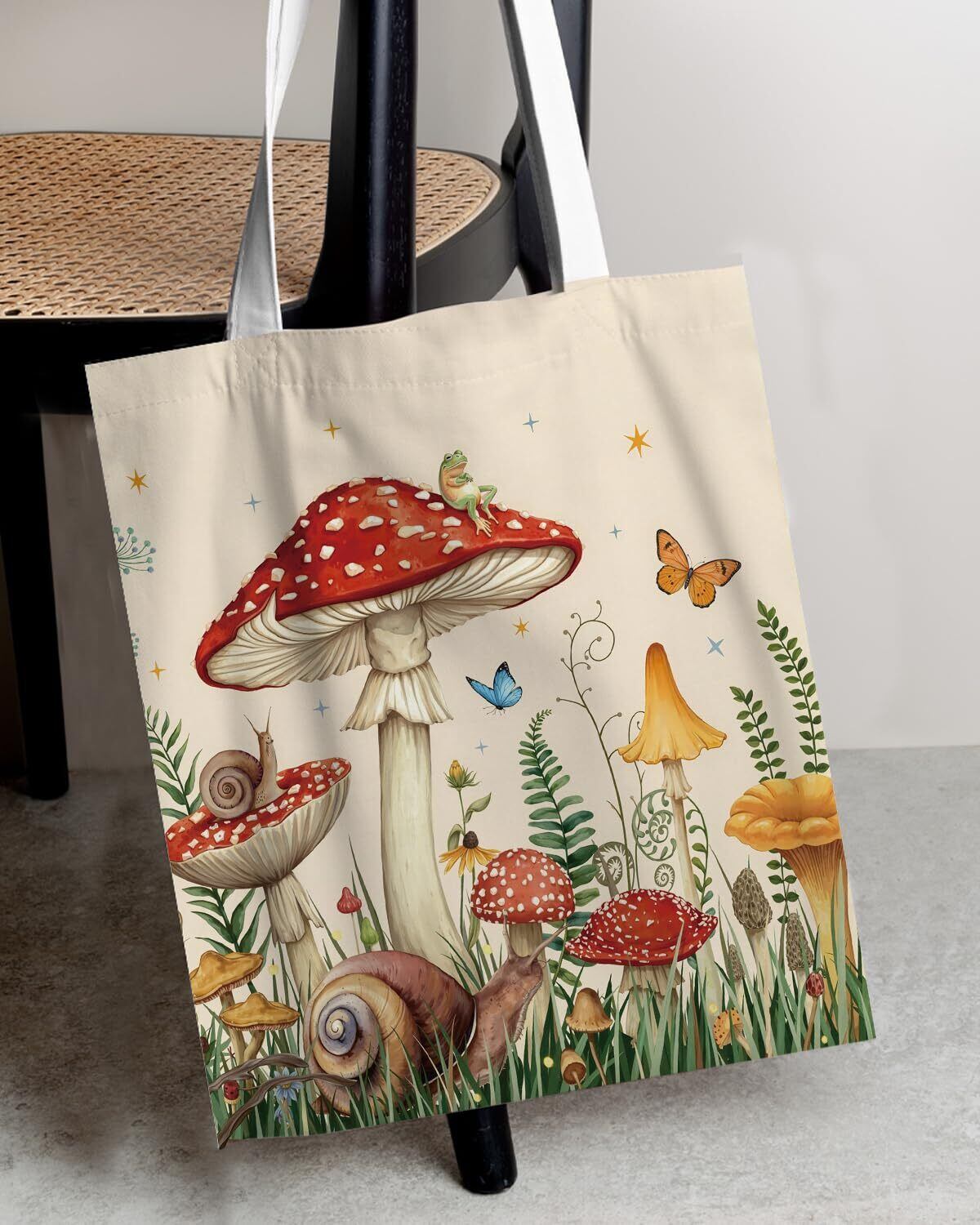 【特価商品】マッシュルームキャンバストートバッグ、女性用、美しい再利用可能な食料品バッグ、パターン、ショッピング、仕事、旅行用