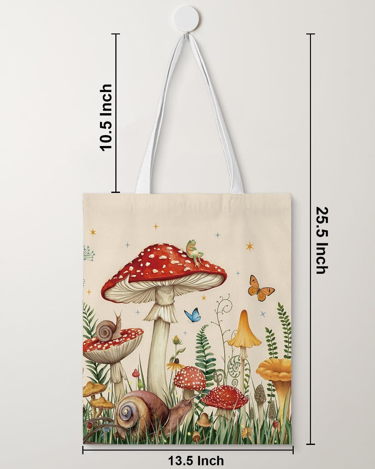 「この『マッシュルームキャンバストートバッグ』で、スタイリッシュなお買い物を楽しみましょう!」/特徴:美しいデザインのこのトートバッグは、日常のショッピングやお仕事、旅行など、あらゆるシーンで活躍します。特に女性にぴったりのデザインで、使い勝手も抜群です。