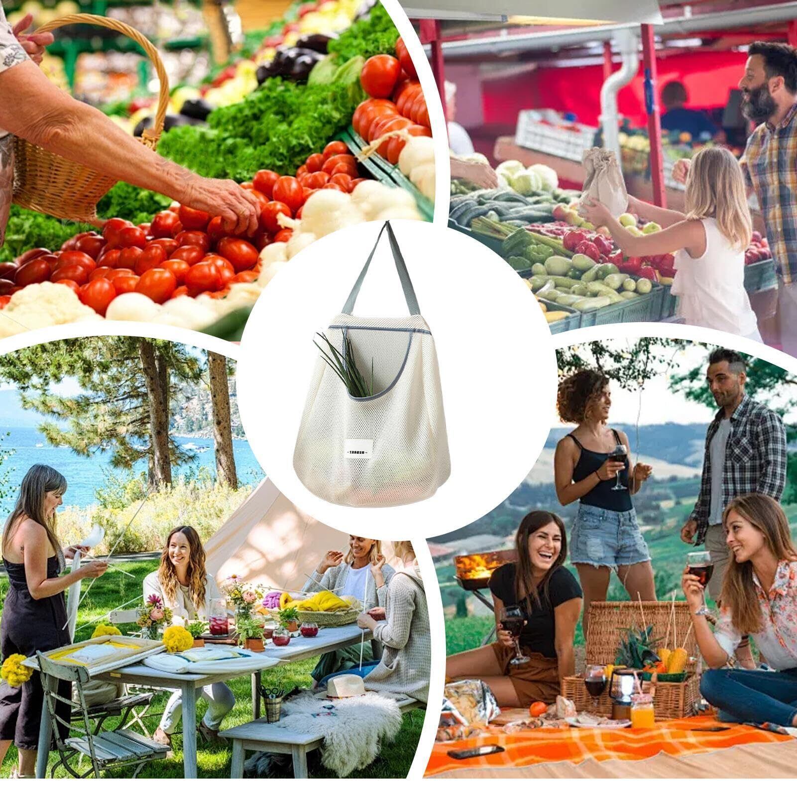 このバッグは多用途に利用でき、果物や野菜の保存はもちろん、キッチンの他のアイテムの収納にも適しています。アウトドアイベントやピクニックなどでも便利に使用できます。
