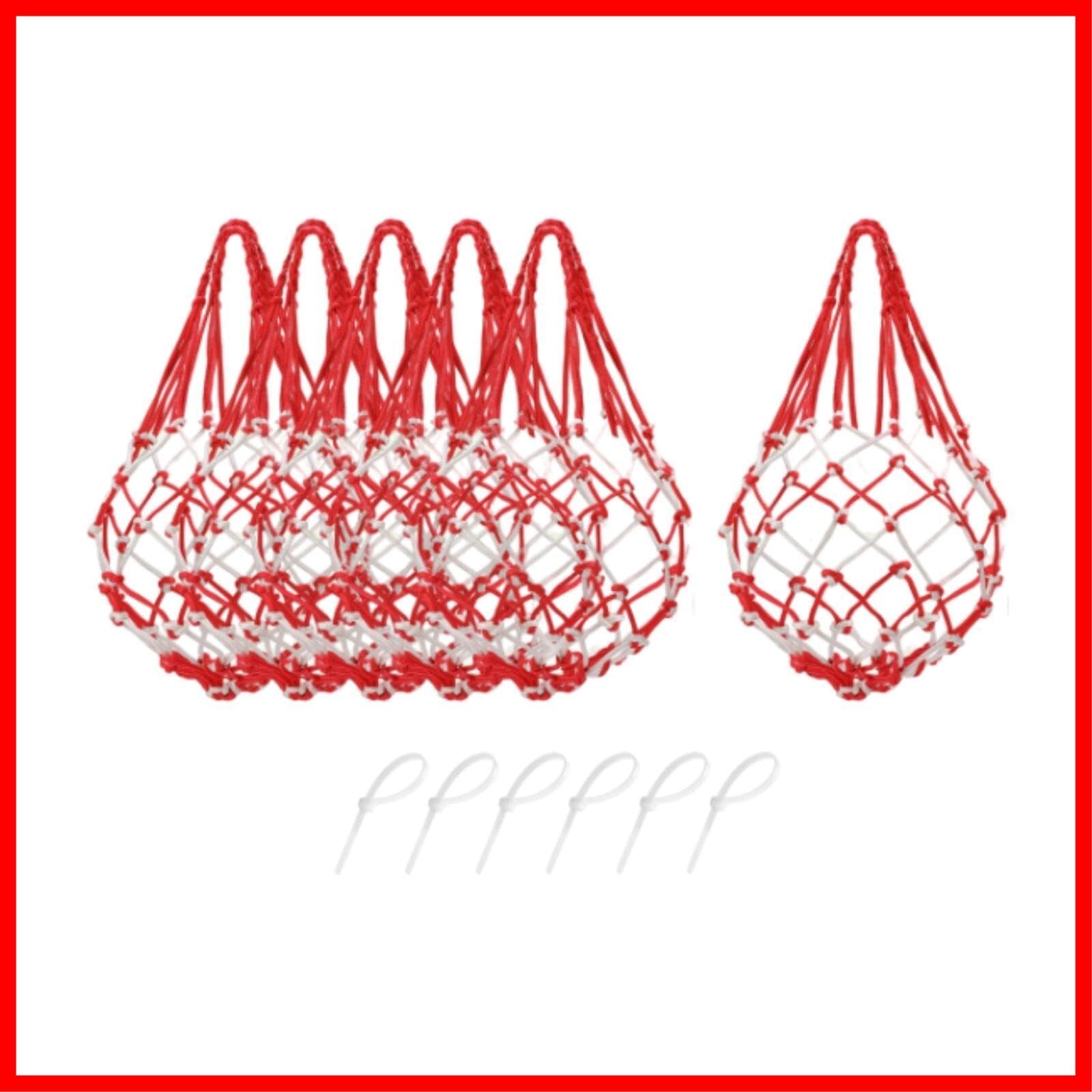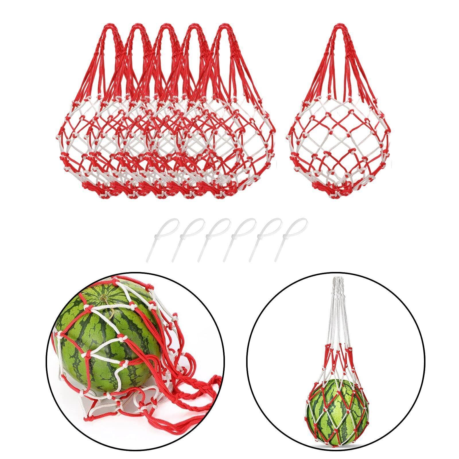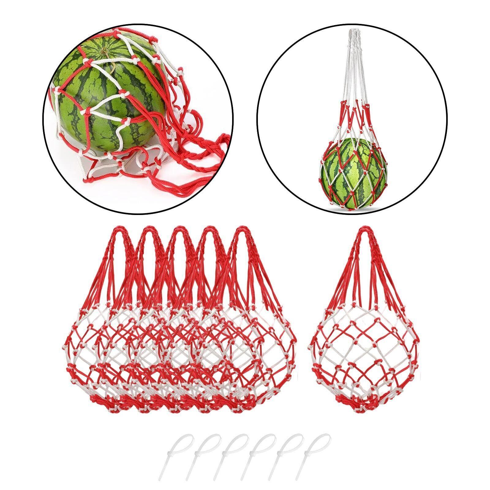 Jinhxofs 【2025新登場·6個 】スイカネット メロンハンモック 吊り下げバッグ 園芸ネット 果物袋 丈夫 通気 果物保護ネット フルーツ保護バッグ 農業ネット ガーデン用 フルーツと野菜保護, 赤白