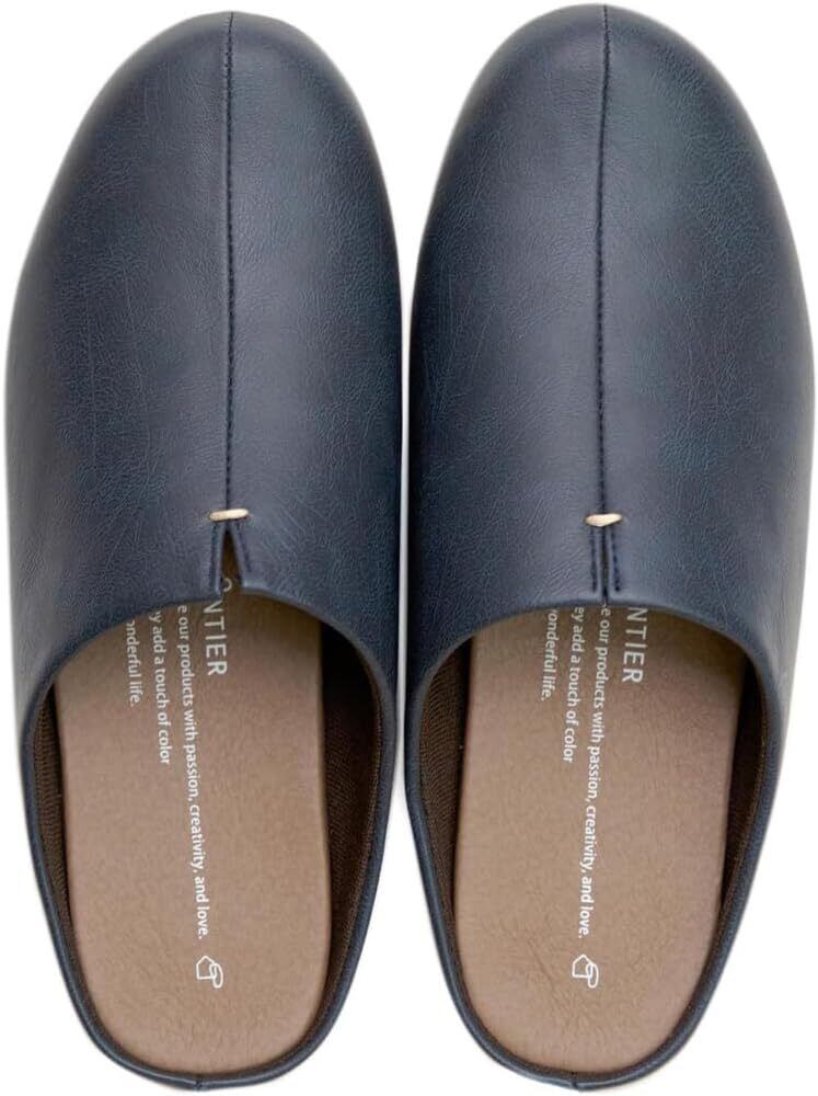 「この『フロンティア 歩くを考えたスリッパ』で、快適さとスタイルを両立させましょう!」/特徴:このスリッパは、足に優しい設計で、歩行時の負担を軽減し、長時間の使用でも快適な履き心地を提供します。シンプルで洗練されたデザインは、室内や来客用にも最適です。