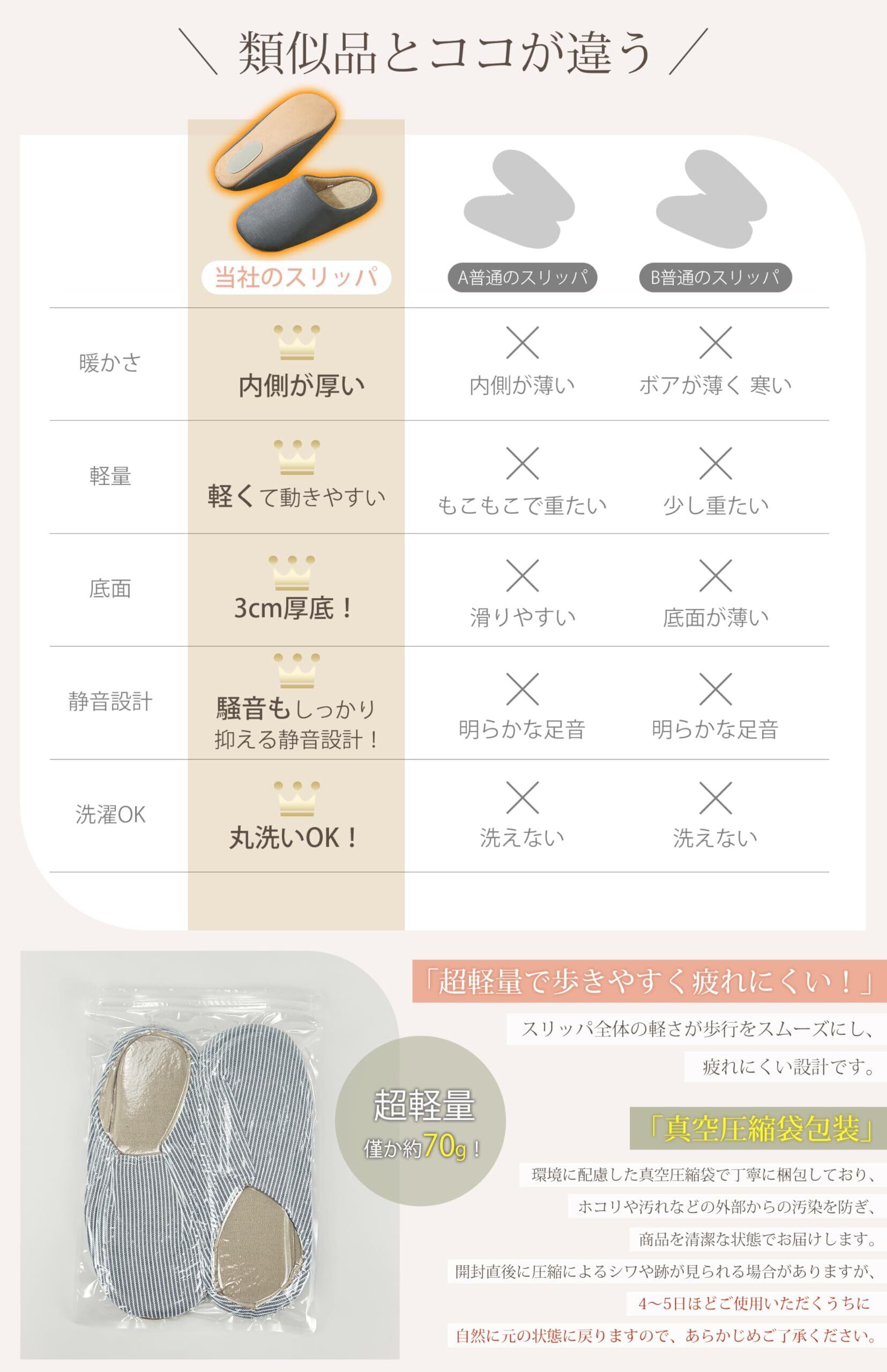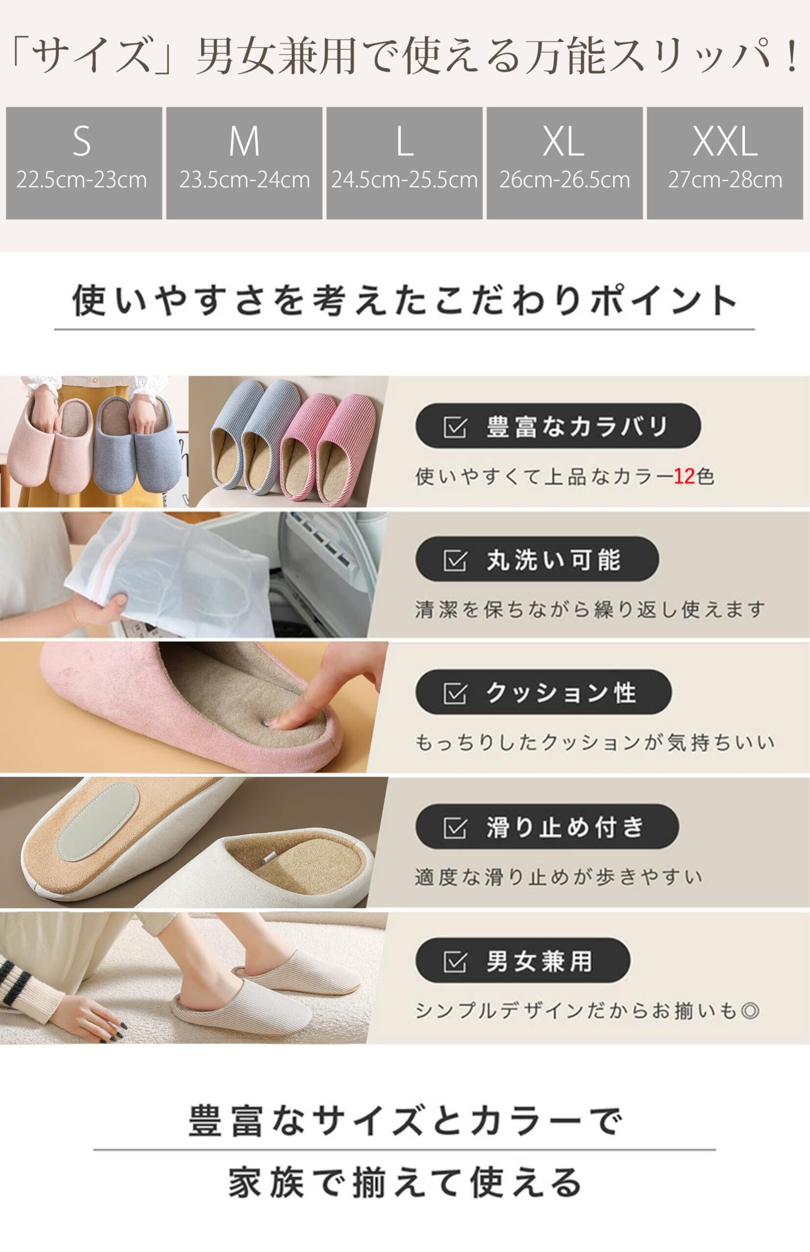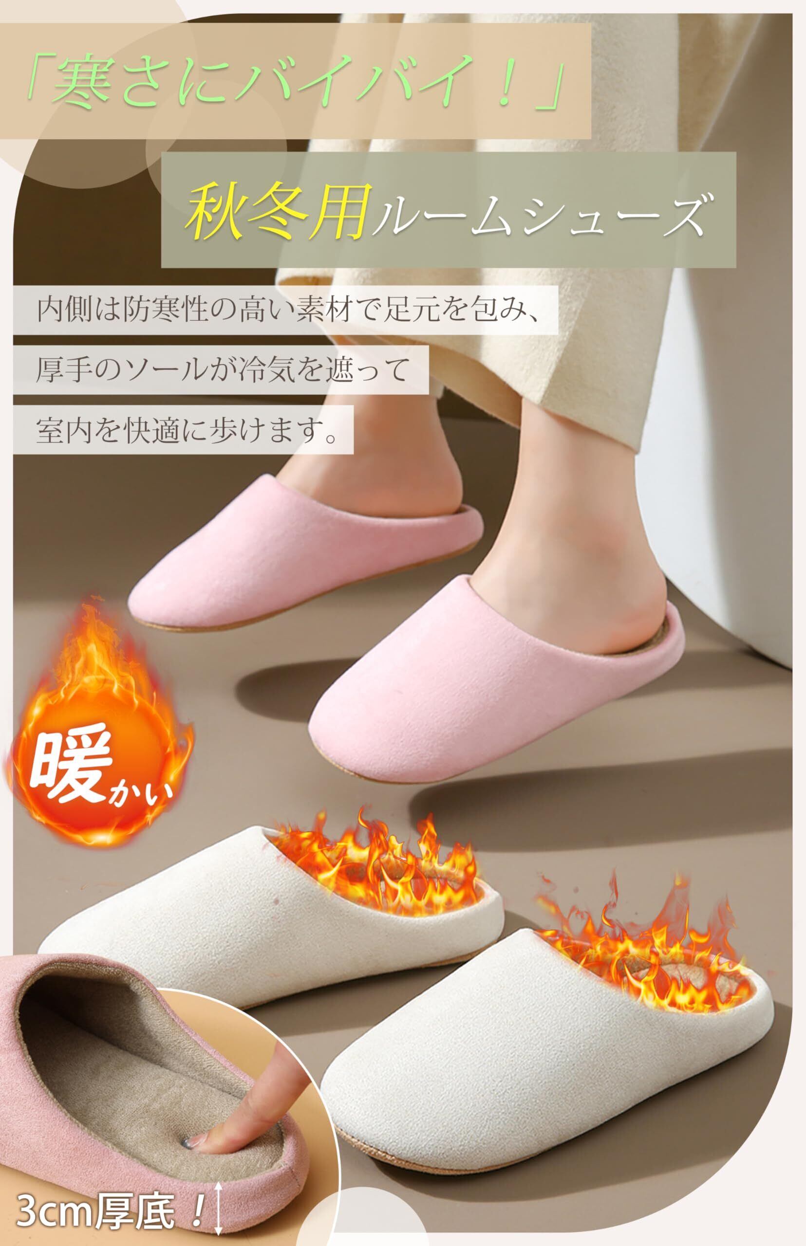 【「おうち時間にぴったり!」超軽量ルームシューズ】寒い季節のおうち時間を快適にしてくれて、超軽量で履き心地抜群のルームシューズです。もこもことした内側が足元をやさしく包み込んで、履いた瞬間から暖かさを実感し、クッション性にも優れており、まるで雲の上を歩いているような柔らかな踏み心地です。防音ソール設計で、歩く音をしっかり抑えてくれるので、集合住宅や夜間の使用でも安心し、洗濯機で丸洗いできるので、お手入れも簡単で、いつでも清潔に保てます。春・秋・冬の3シーズンに対応しており、冷えやすい足元をしっかりと守ります。デザインもシンプルで、男女問わず使いやすいのもポイントで、家族でおそろいにもおすすめです。※環境に配慮した真空圧縮袋で丁寧に梱包しており、ホコリや汚れなどの外部からの汚染を防ぎ、商品を清潔な状態でお届けします。開封直後に圧縮によるシワや跡が見られる場合がありますが、4〜5日ほどご使用いただくうちに自然に元の状態に戻りますので、あらかじめご了承ください。
