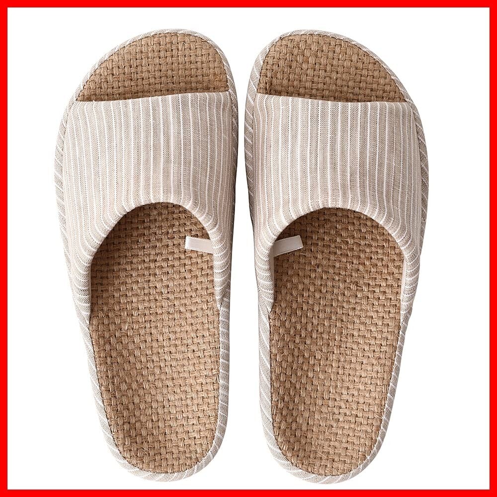【特価商品】[YAKIDA] 人間工学デザイン スリッパ 室内 麻 ルームシューズ 室内履き 静音 軽量 四季 前開き 滑り止め メンズ レディース 和風 無地 シンプル 素足で履く洗濯可