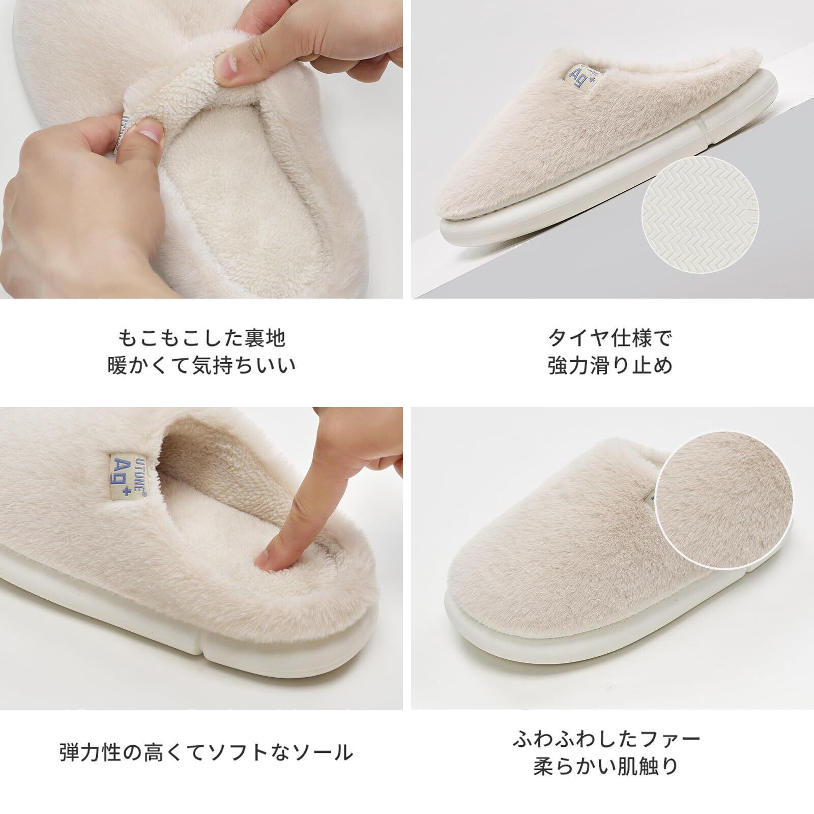[utune] 冬用 暖かい スリッパ もこもこ ボア ファースリッパ 室内 あったか ルームシューズ 軽量 滑り止め 厚底 メンズ レディース かわいい おしゃれ