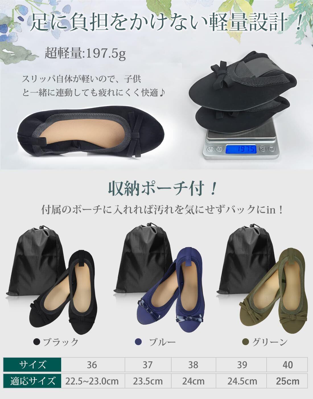 [Tophana] 携帯スリッパ レディース 折りたたみスリッパ 【絶妙な履き心地・抗菌防臭加工済 】【裏側防水加工・収納ポーチ付 】 携帯シューズ 超軽量