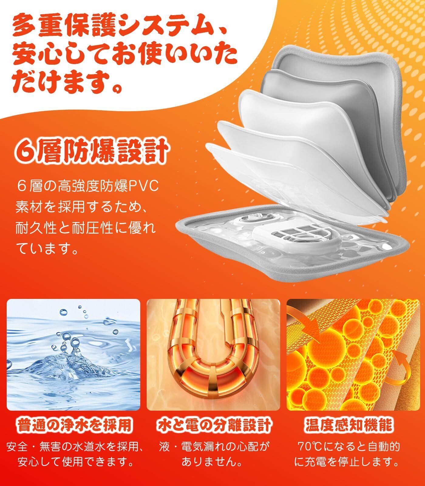 ️【多重安全保護設計 PSE認証済み】①水と電気の完全分離構造②6層構造の防爆PVC素材③腐食性のない水を採用④気圧検知チップの搭載(異常気圧を感知し安全を確保)⑤過熱防止機能(70℃以上で自動電源オフ)⑥PSE認証済み&METI経済省登録済み。厳格な安全基準と多重の保護機能により、安心してお使いいただけます。