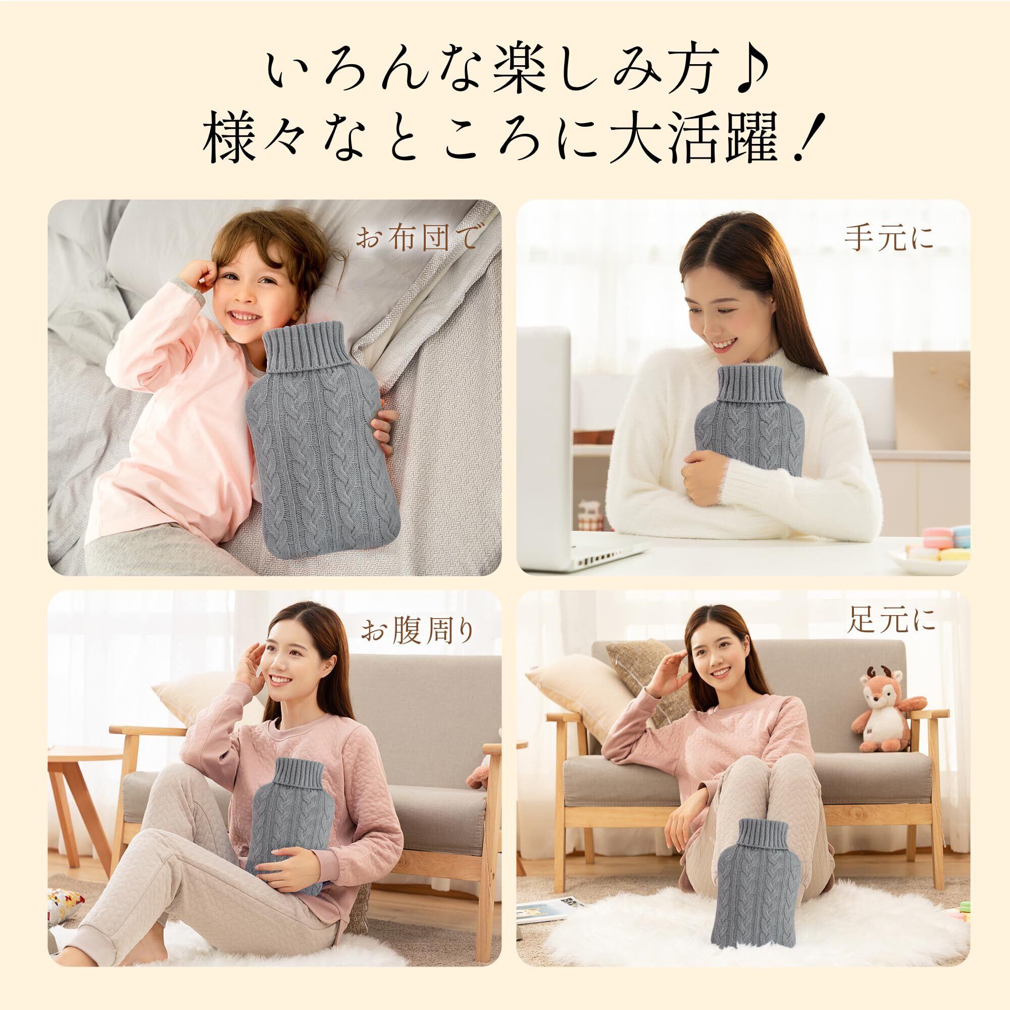 【特価商品】samply 湯たんぽ お湯 ゆたんぽ 柔らかい 湯タンポ ニット カバー付き 容量1.8L もふもふ 暖か グッズ 防寒グッズ 安眠グッズ 寒さ 冷え対策 冬 ギフト (ニットカバー グレー 1.8L) | Cherry Blossoms
