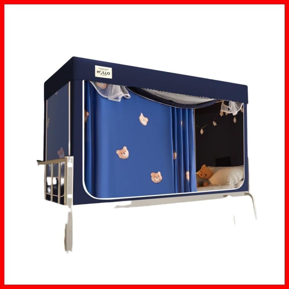 【新着商品】EVREFINシングルベッドプライバシーテント 室内カーテン ベッドテント 夏 蚊帳 蚊対策 全方位 遮光 通気性よい 組み立て簡単,グレー,90*190*110cm (上段ベッド,ブルー) | Cherry Blossoms