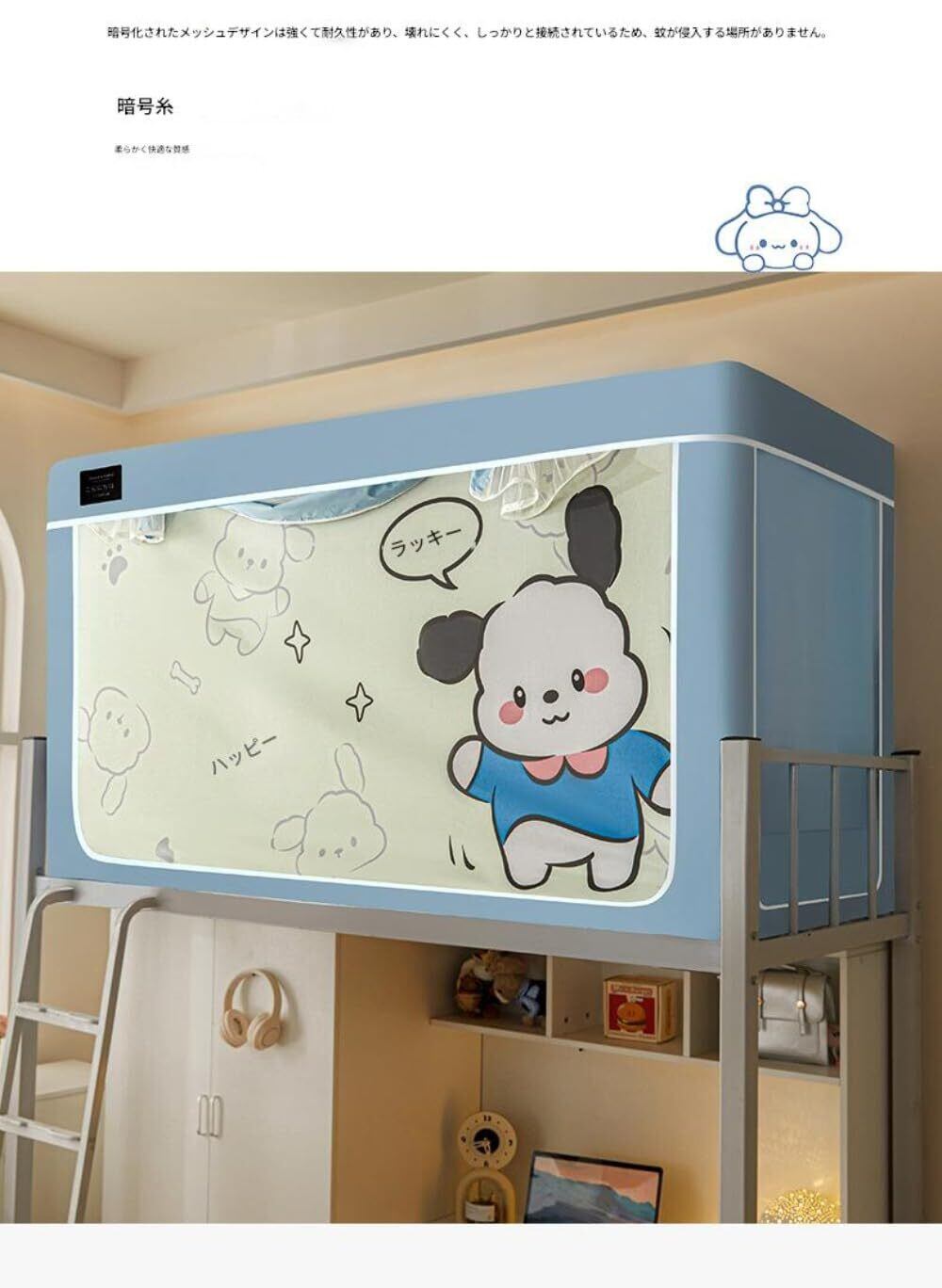 多様な設置方法:蚊帳は、二段ベッドだけでなく、様々なベッドの形態に対応できるように設計されています。単身ベッドやダブルベッドにも簡単に取り付けられ、幅広いユーザー層に適しています。