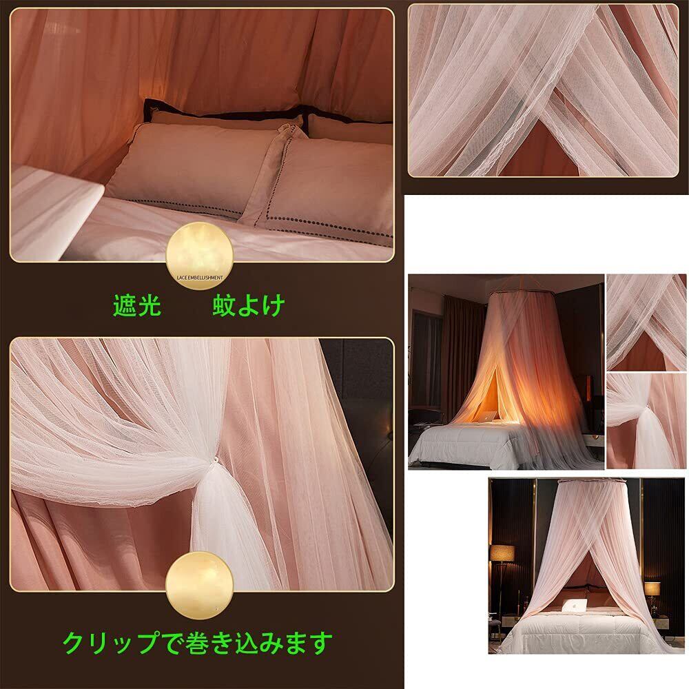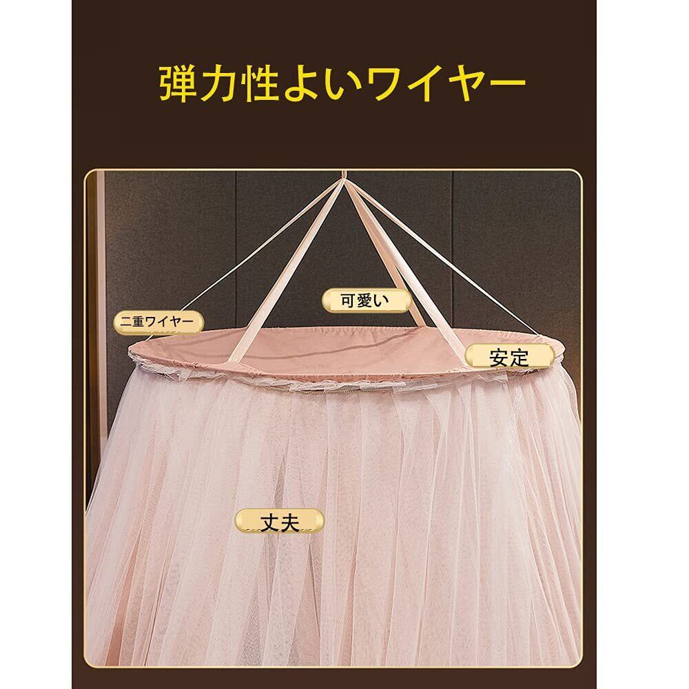 Peyily 天蓋カーテン 蚊帳 円形 モスキートネット お姫様気分 オシャレ 吊り下げ インテリア 防虫防蚊 快適な安眠へ 取り付け簡単 (約)直径100×高280cm (ピンク)